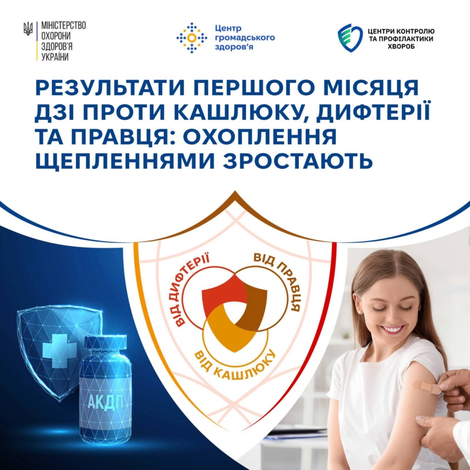 Станом на 01.09.2024 у рамках проведення додаткових заходів з імунізації населення проти кашлюку, дифтерії, правця виконано 306 176 щеплень – 19,6% із запланованої кількості. Зокрема, дітям віком від 1 до 6 років проведено 43 378 щеплень проти кашлюку, дифтерії та правця (24,7% від запланованої кількості у цій віковій групі); дітям 7–17 років — 48 300 щеплень проти дифтерії та правця (22,5%); дорослим — 209 283 щеплення проти дифтерії та правця (18% від загальної кількості дорослих осіб, які підлягають на щеплення).