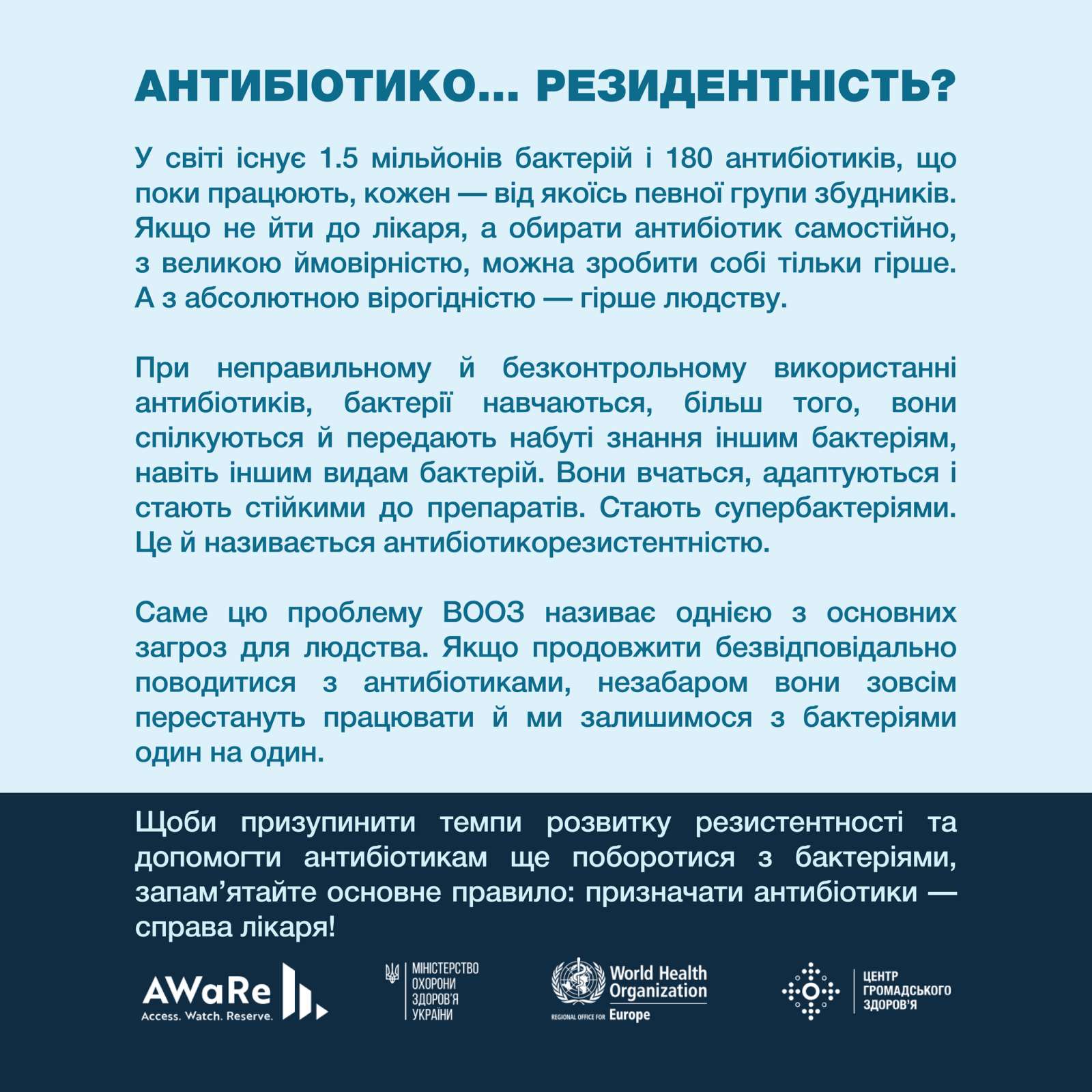 Більше про антибіотикорезистентність і як її зупинити читайте на сайті: https://antibiotics-expert.phc.org.ua/