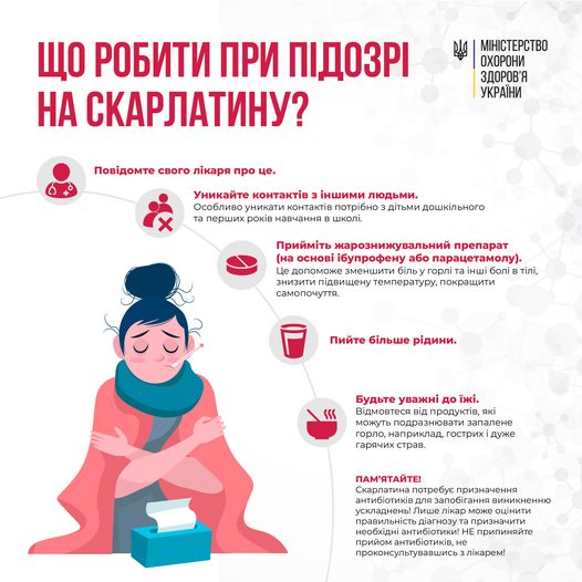 На скарлатину найчастіше хворіють діти віком 1–9 років. Шлях інфікування — повітряно-краплинний. Зокрема, під час кашлю, чхання і навіть розмови хворого. Щеплення проти скарлатини немає, але після того, як людина перехворіє, виробляється імунітет.