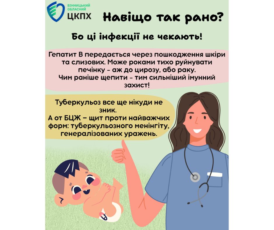 14 червня 2025Перший погляд, перший дотик… і перший захист. Уже в пологовому немовля отримує 2 перших щеплення. І це не “занадто рано” – це вчасно, як ніколи!
