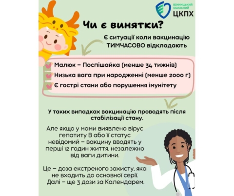 Але якщо у мами виявлено вірус гепатиту B або її статус невідомий, вакцину вводять у перші 12 годин життя, незалежно від ваги дитини. Це – доза екстреного захисту, яка не входить до основної серії. Далі – ще 3 дози за Календарем.