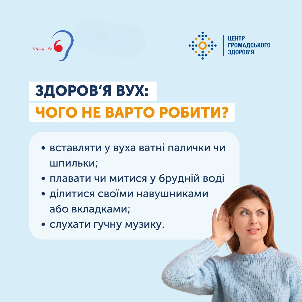 -вставляти у вуха ватні палички чи шпильки;