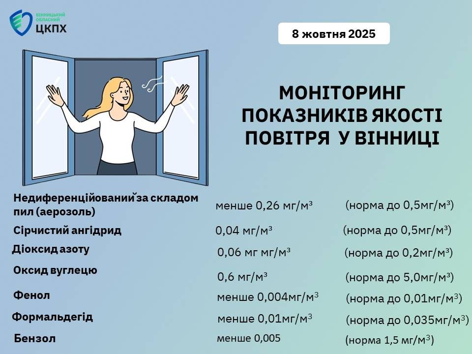 Вінницький обласний центр контролю та профілактики хвороб продовжує проводити дослідження якості повітря у Вінниці.