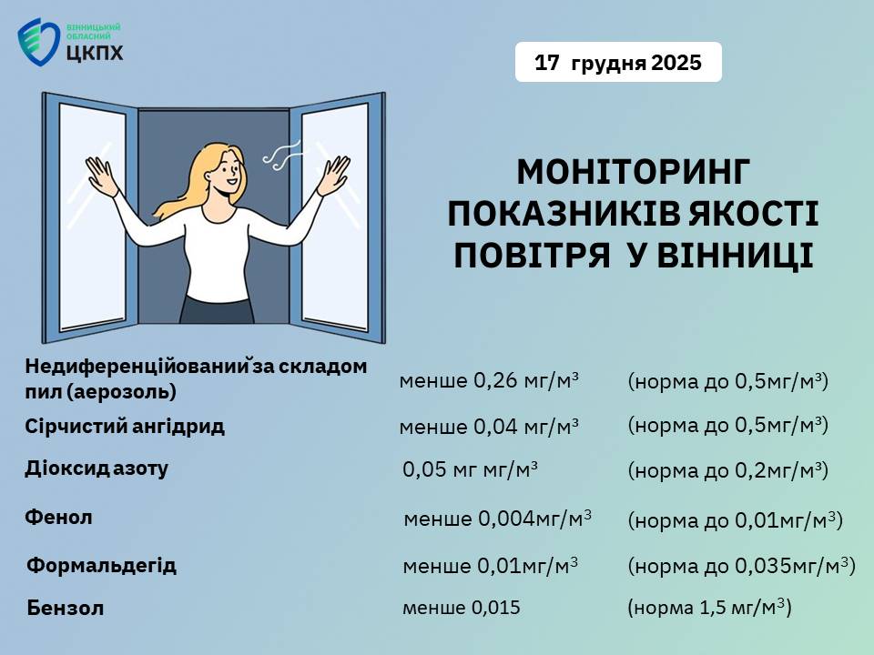 Згідно з отриманими результатами станом на 17 грудня 2025 року зазначені показники не перевищують нормативні рівні.