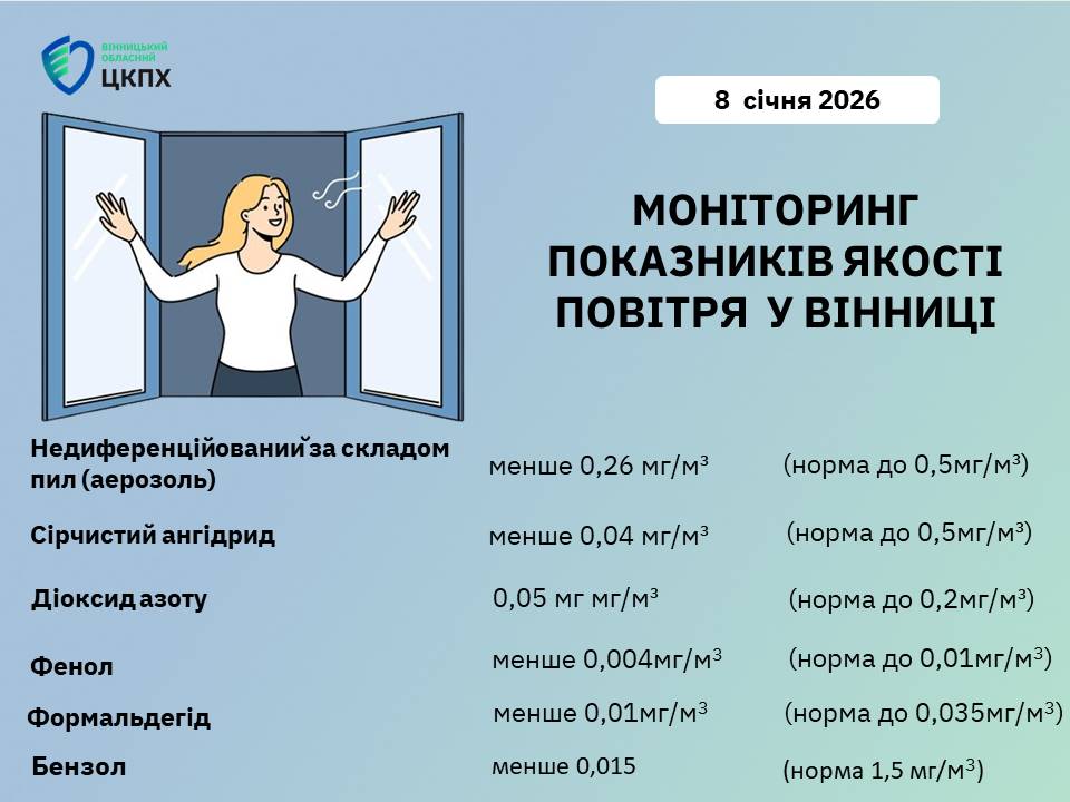 Вінницький обласний центр контролю та профілактики хвороб продовжує проводити дослідження якості повітря у Вінниці.