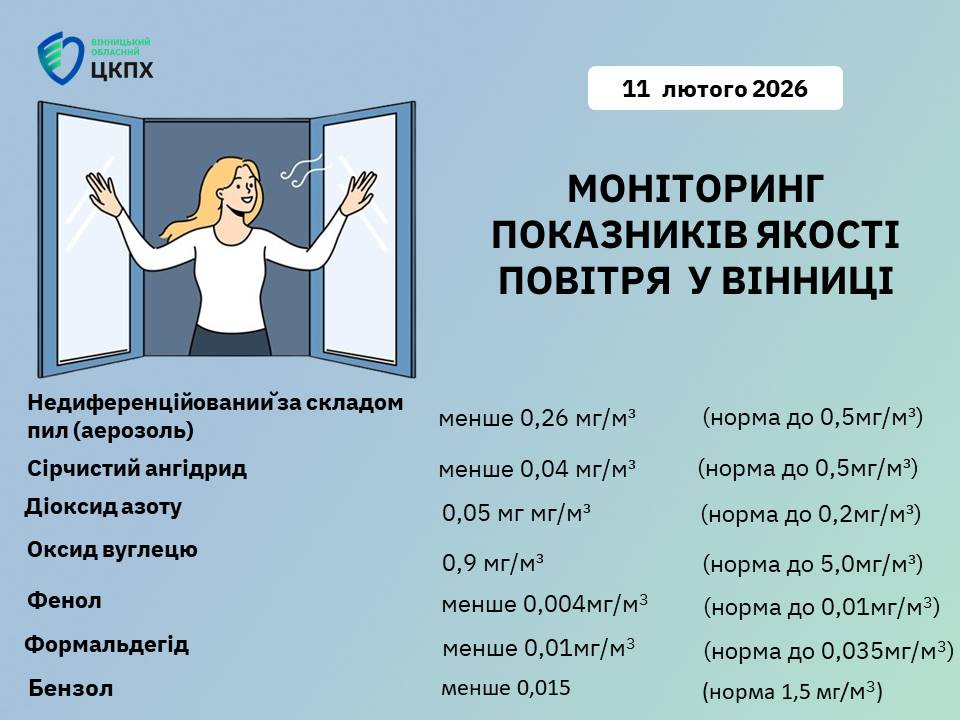 Згідно з отриманими результатами станом на 11 лютого 2026 року зазначені показники не перевищують нормативні рівні.