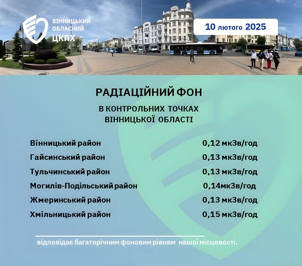 Моніторинг радіаційного фону у Вінницькій області станом на 10.02.2025
