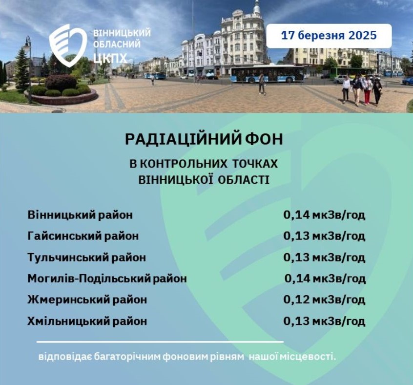 Моніторинг радіаційного фону у Вінницькій області станом на 17.03.2025