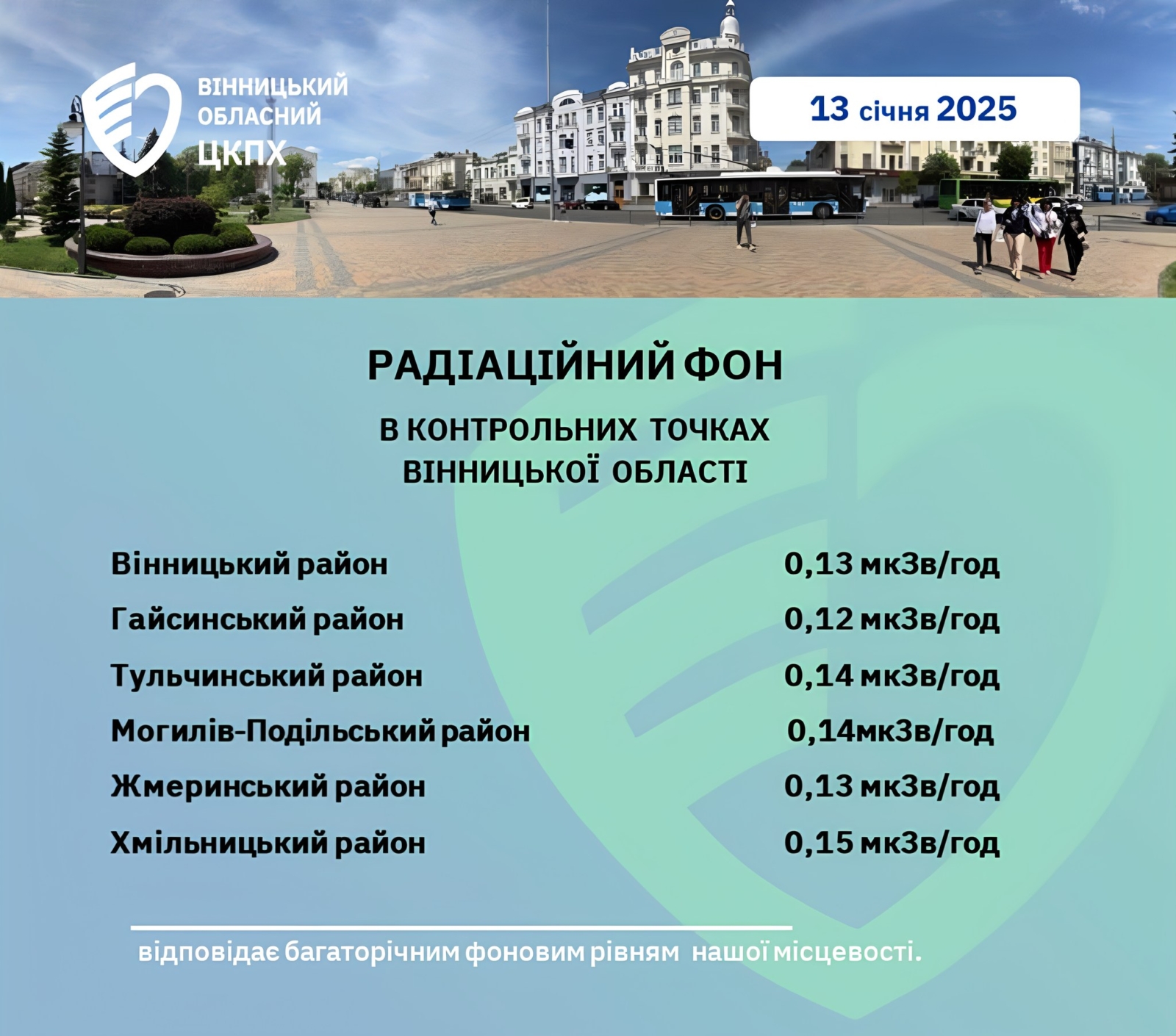 Моніторинг радіаційного фону у Вінницькій області станом на 13.01.2025