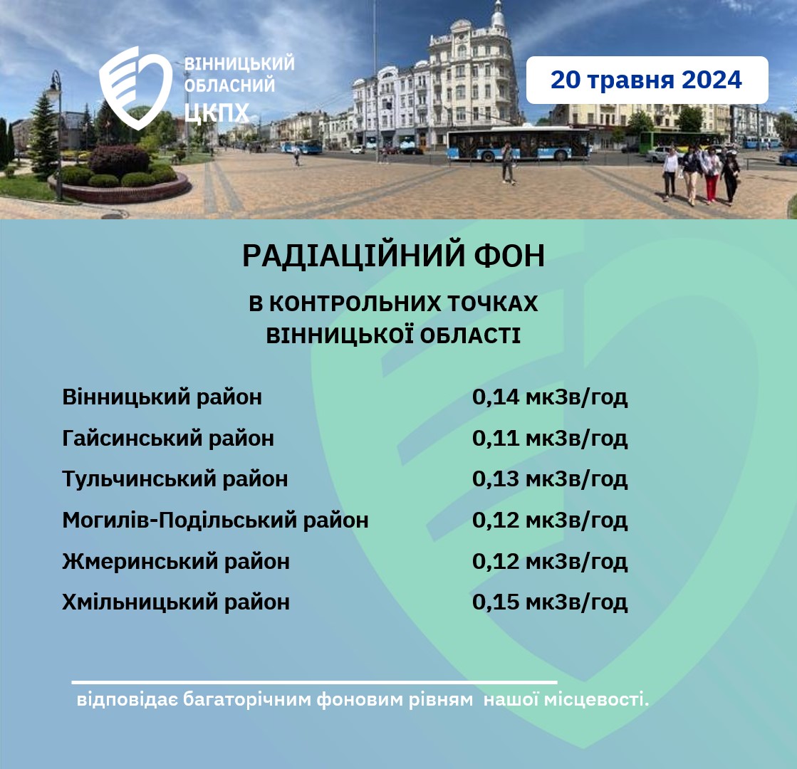 Моніторинг радіаційного фону у Вінницькій області станом на 20.05.2024