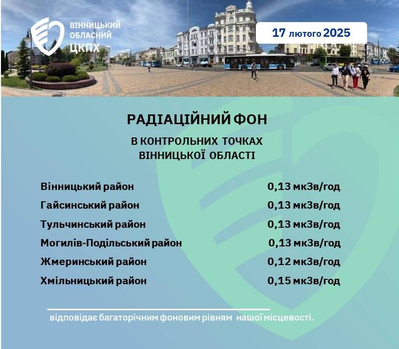 Моніторинг радіаційного фону у Вінницькій області станом на 17.02.2025