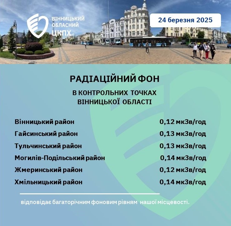 Моніторинг радіаційного фону у Вінницькій області станом на 24.03.2025