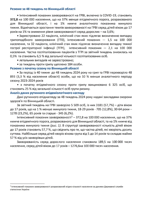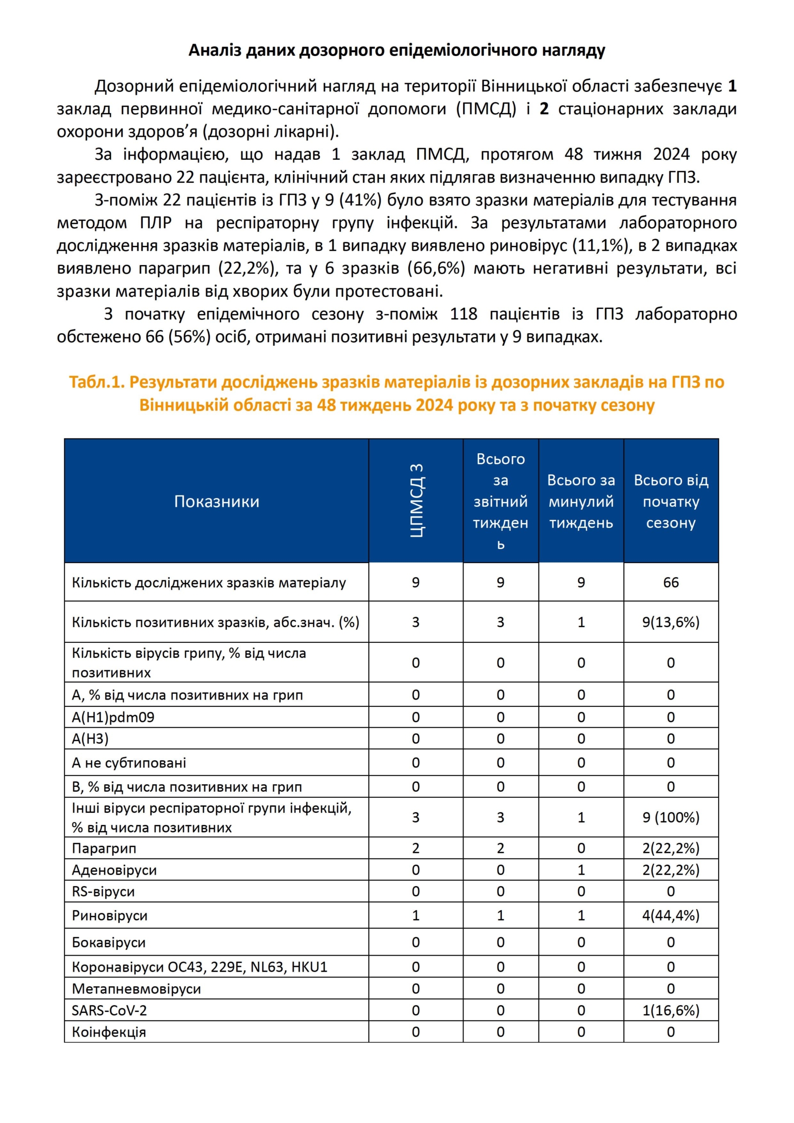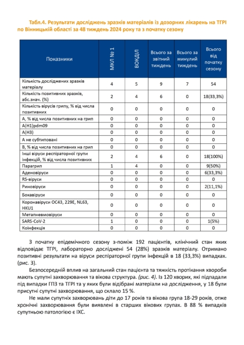 Про епідемічну ситуацію з грипу та ГРВІ і здійснювані заходи по їх профілактиці станом на 02 грудня 2024 року