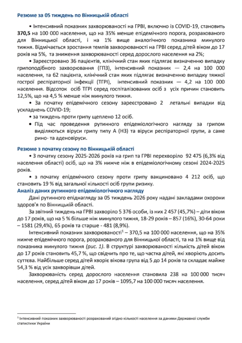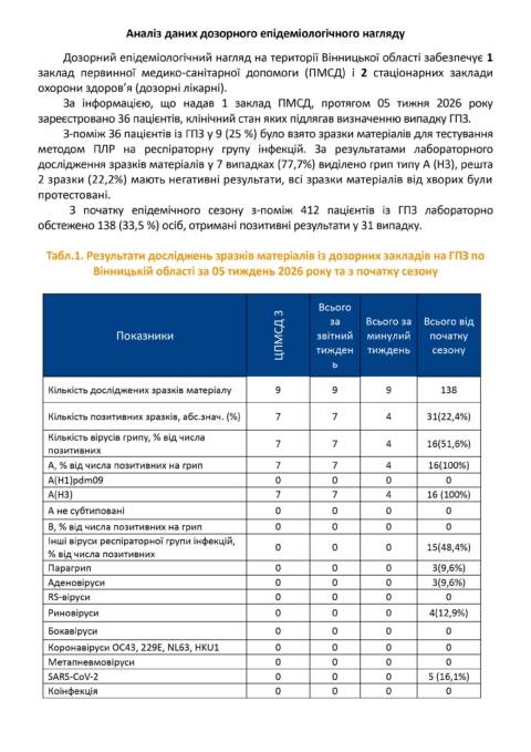 Про епідемічну ситуацію з грипу та ГРВІ і здійснювані заходи по їх профілактиці станом на 02 лютого 2026 року
