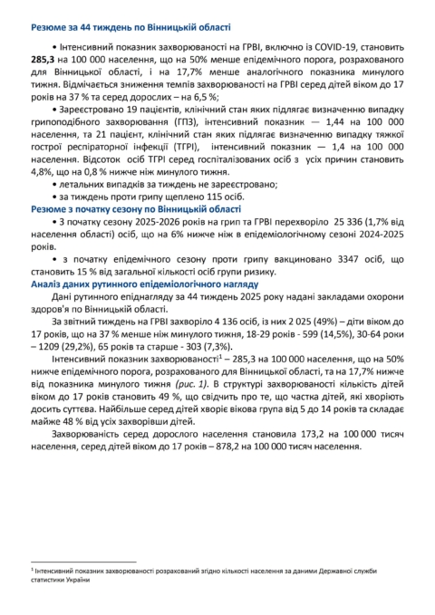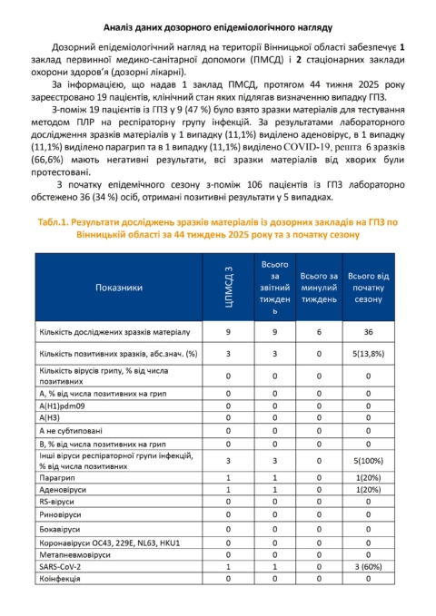 Про епідемічну ситуацію з грипу та ГРВІ і здійснювані заходи по їх профілактиці станом на 03 листопада 2025 року