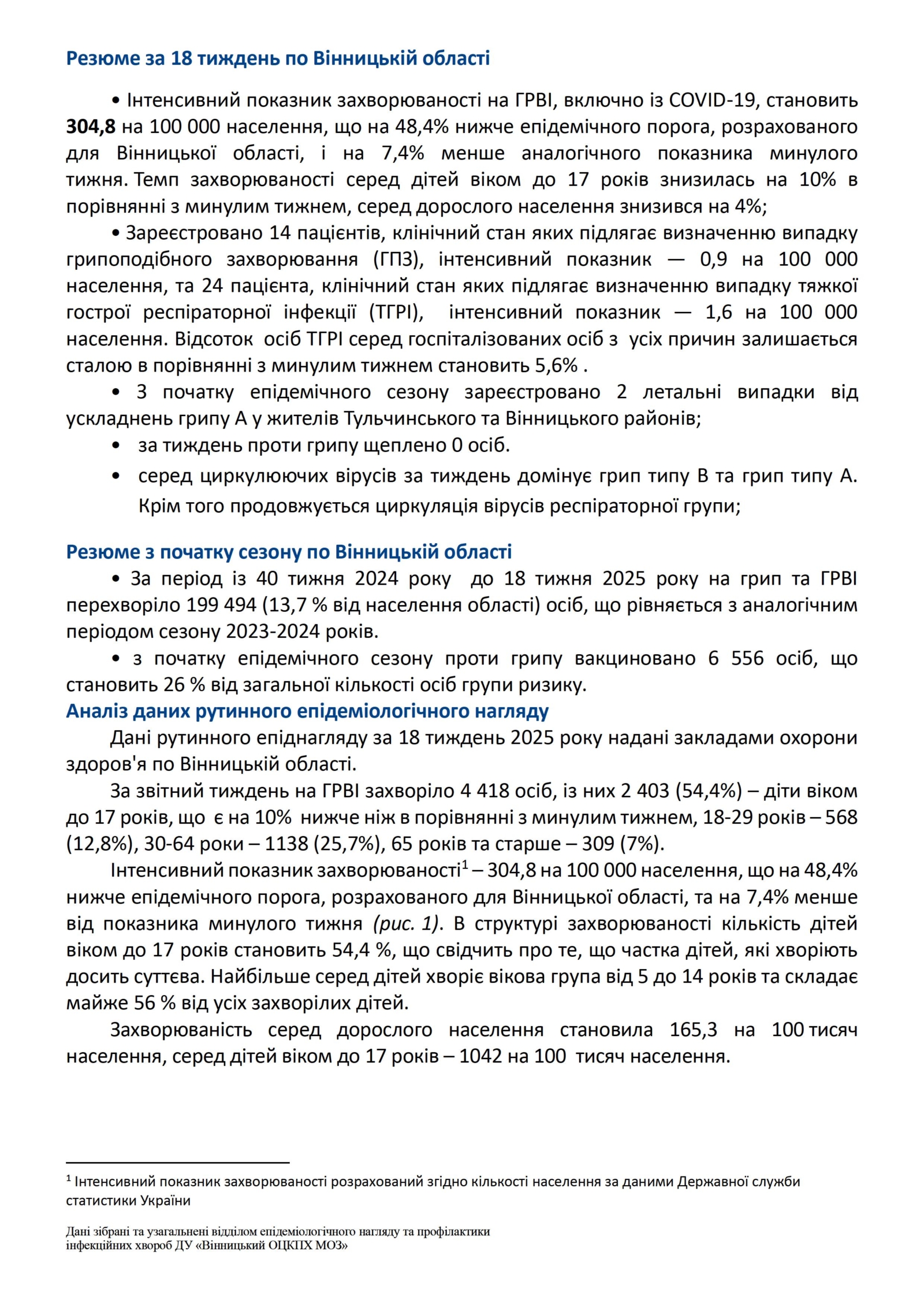 Про епідемічну ситуацію з грипу та ГРВІ і здійснювані заходи по їх профілактиці станом на 05 травня 2025 року