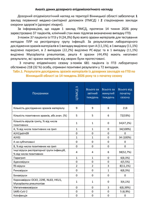 Про епідемічну ситуацію з грипу та ГРВІ і здійснювані заходи по їх профілактиці станом на 06 квітня 2026 року
