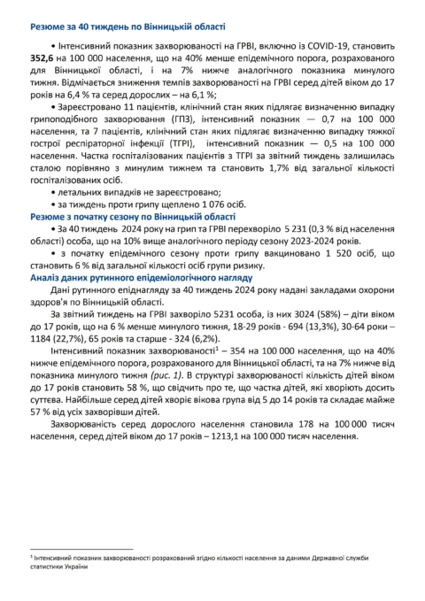 Про епідемічну ситуацію з грипу та ГРВІ і здійснювані заходи по їх профілактиці станом на 07 жовтня 2024 року