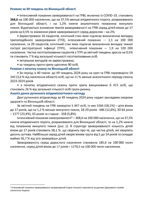 Про епідемічну ситуацію з грипу та ГРВІ і здійснювані заходи по їх профілактиці станом на 09 грудня 2024 року