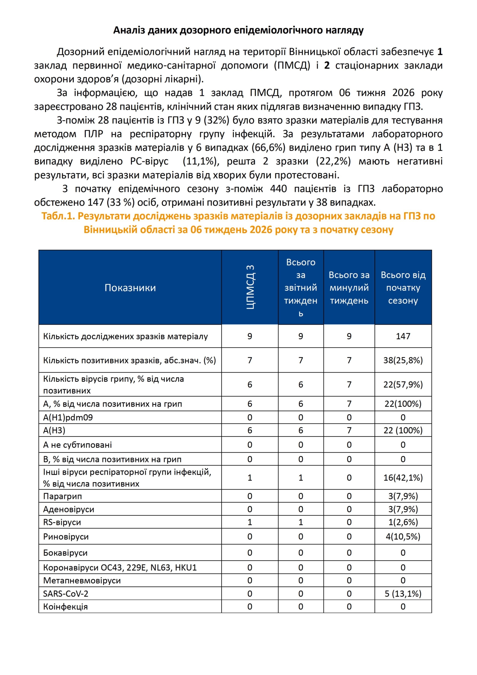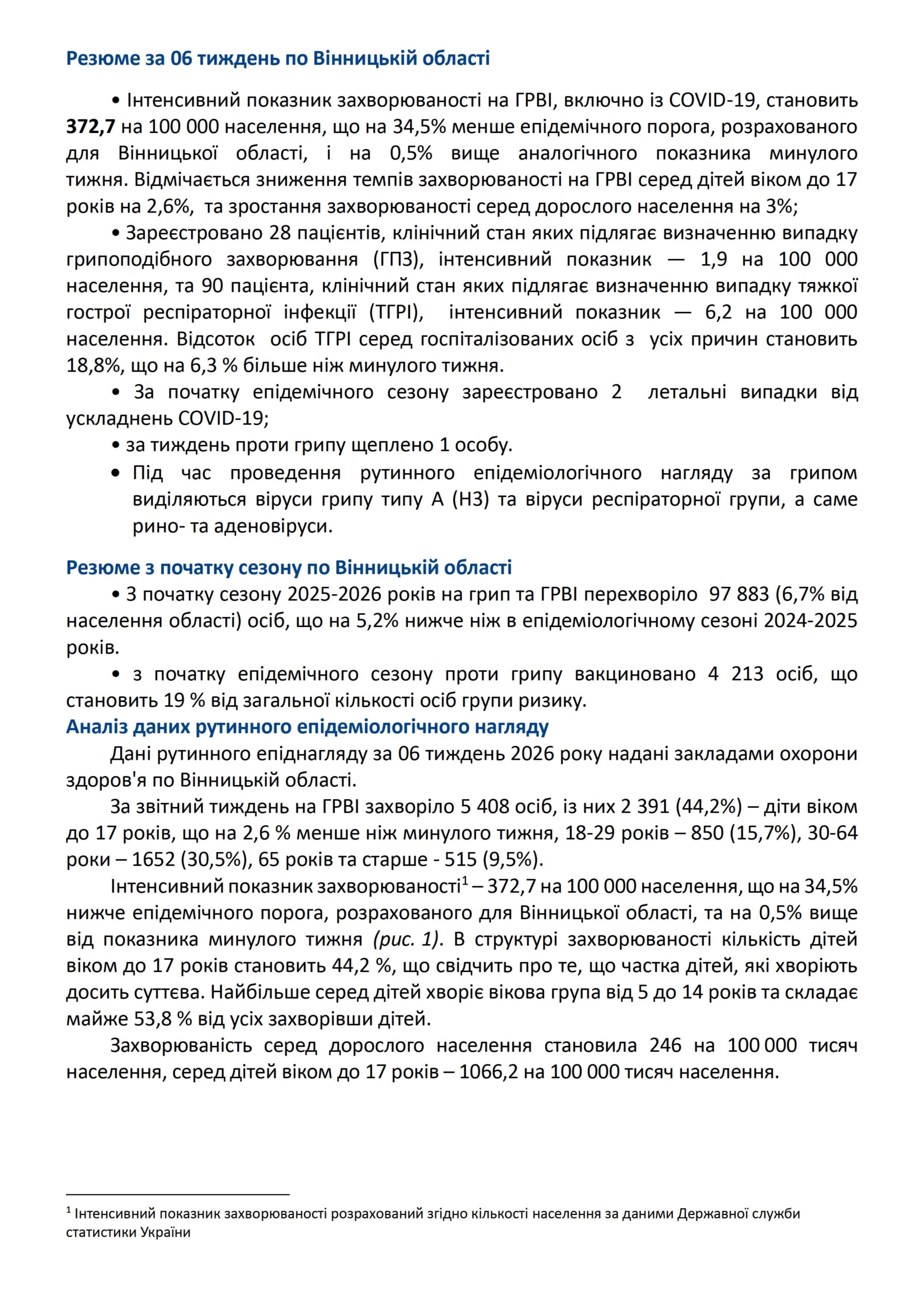 Про епідемічну ситуацію з грипу та ГРВІ і здійснювані заходи по їх профілактиці станом на 09 лютого 2026 року