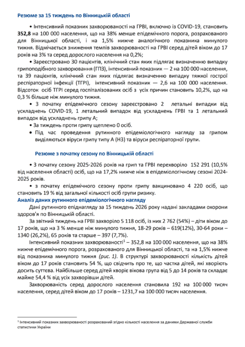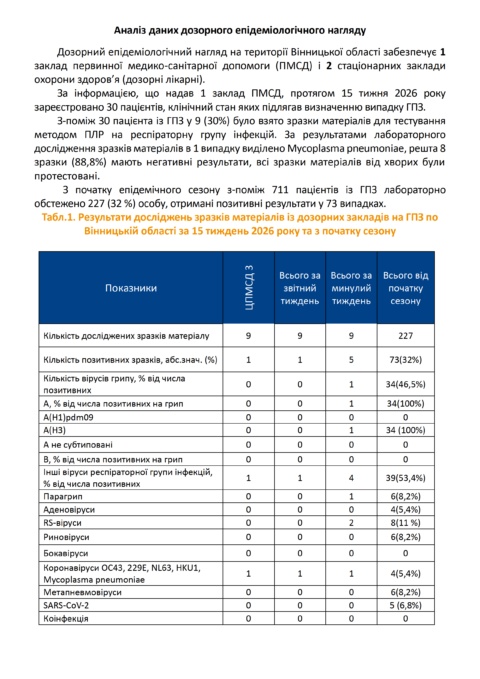 Про епідемічну ситуацію з грипу та ГРВІ і здійснювані заходи по їх профілактиці станом на 13 квітня 2026 року