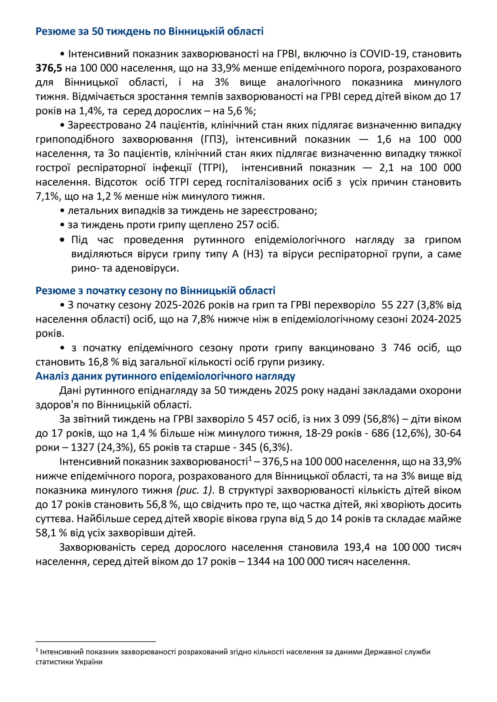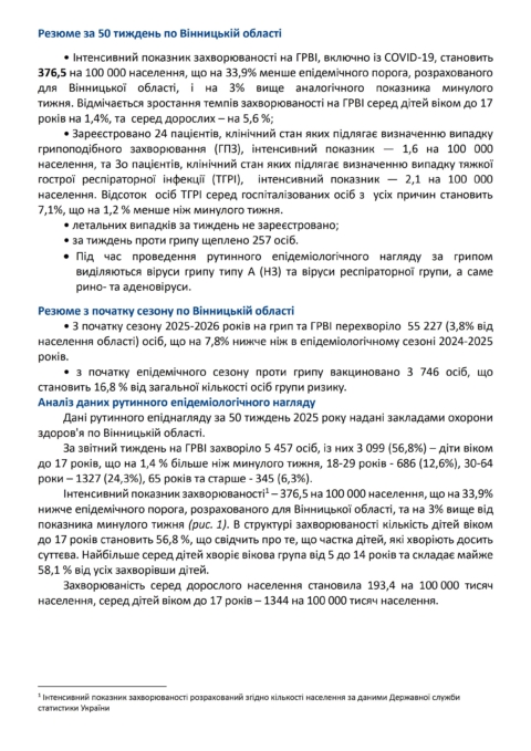 Про епідемічну ситуацію з грипу та ГРВІ і здійснювані заходи по їх профілактиці станом на 15 грудня 2025 року