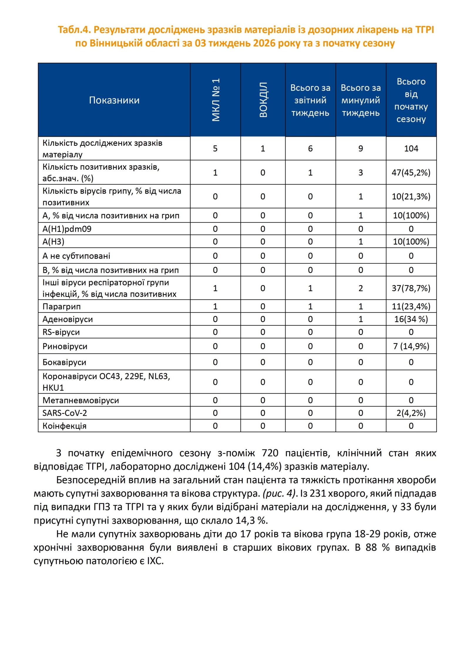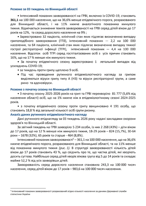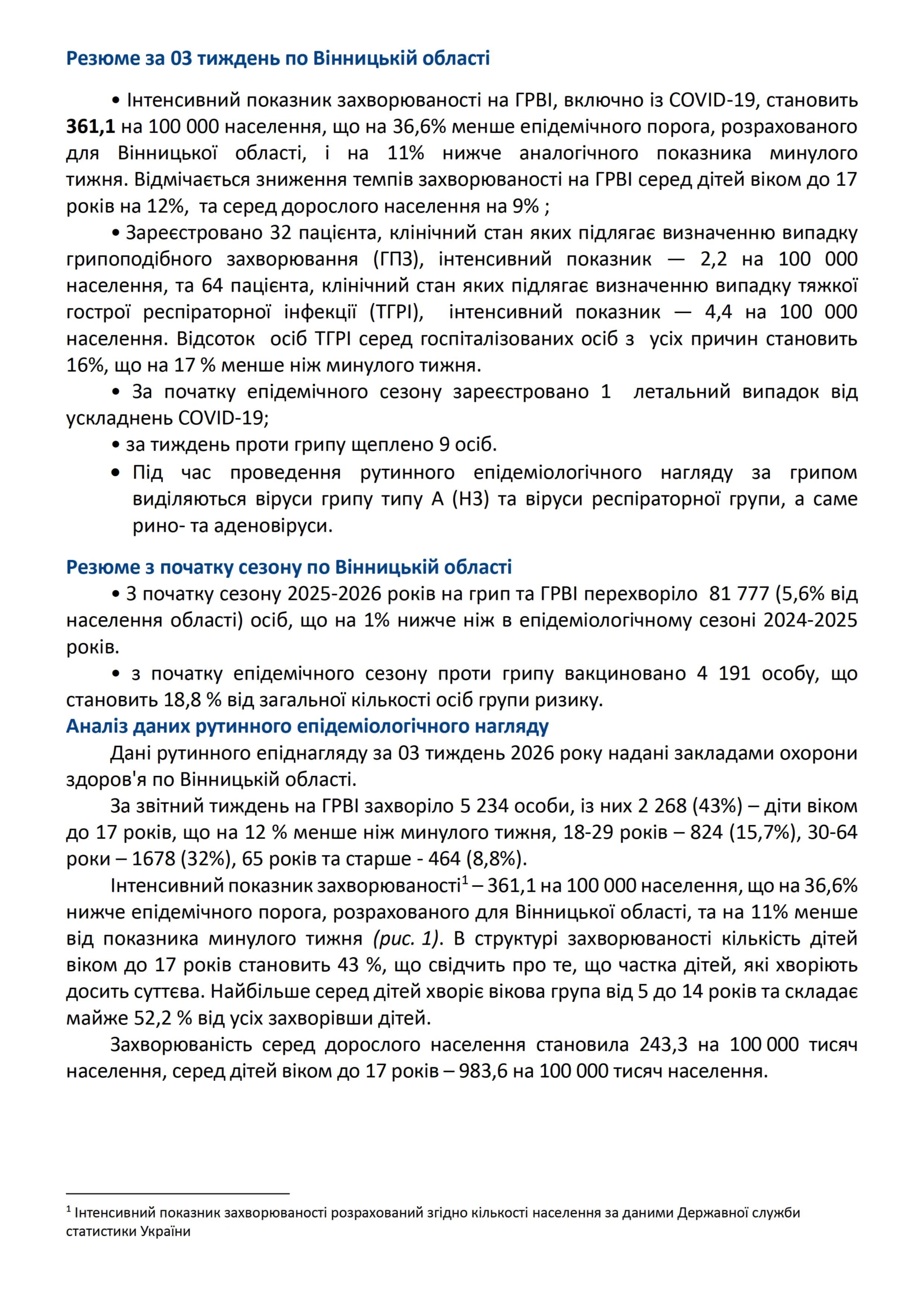 Про епідемічну ситуацію з грипу та ГРВІ і здійснювані заходи по їх профілактиці станом на 19 січня 2026 року
