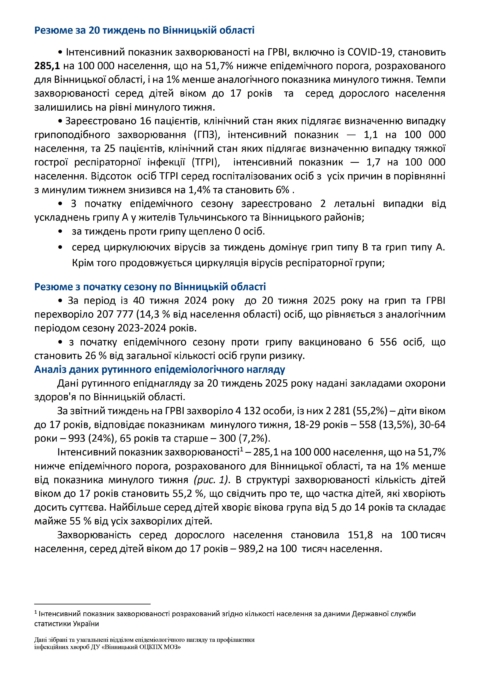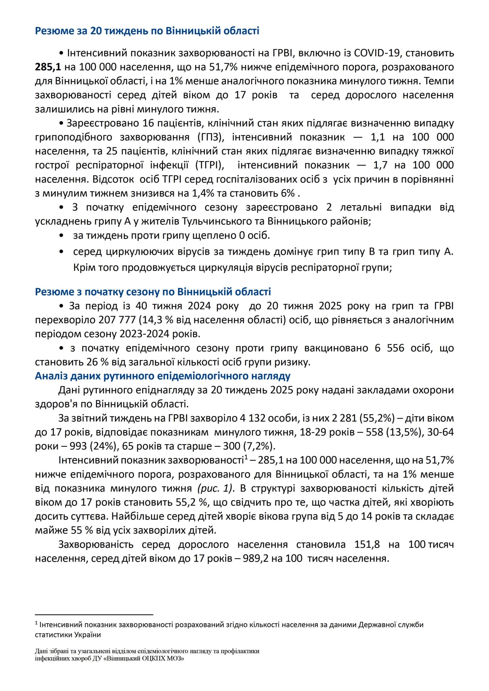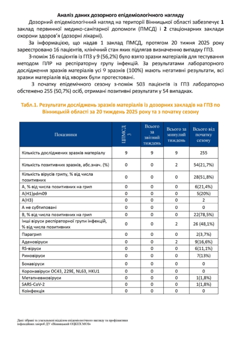 Про епідемічну ситуацію з грипу та ГРВІ і здійснювані заходи по їх профілактиці станом на 19 травня 2025 року