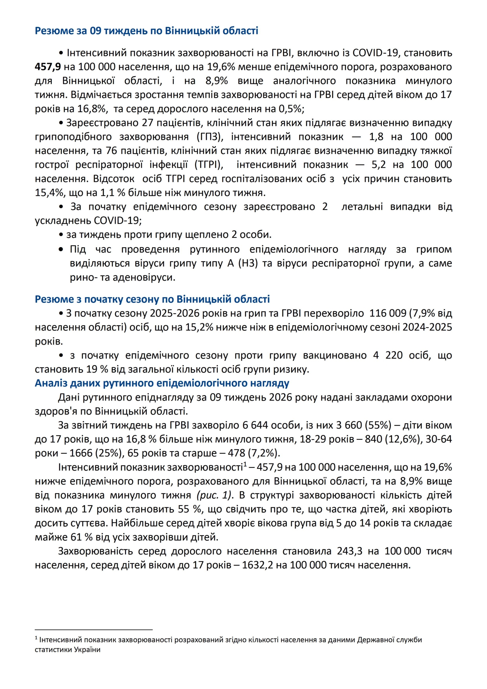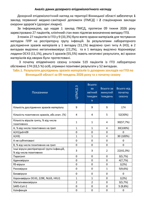 Про епідемічну ситуацію з грипу та ГРВІ і здійснювані заходи по їх профілактиці станом на 2 березня 2026 року