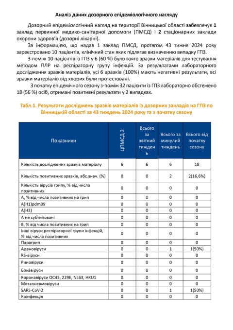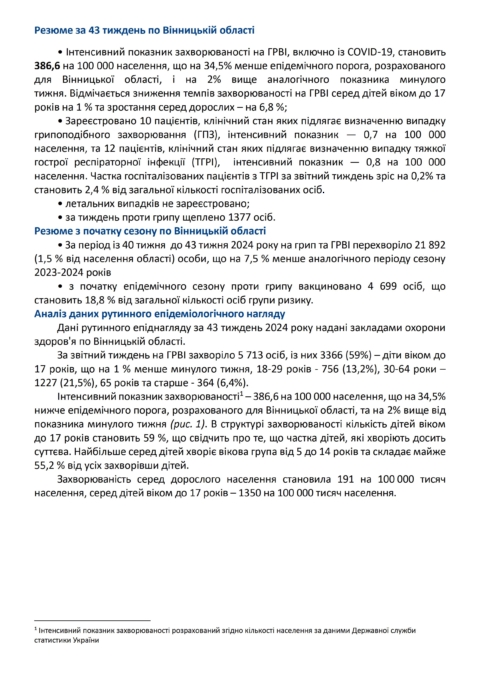 Про епідемічну ситуацію з грипу та ГРВІ і здійснювані заходи по їх профілактиці станом на 28 жовтня 2024 року