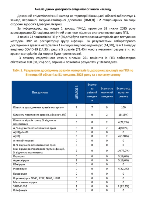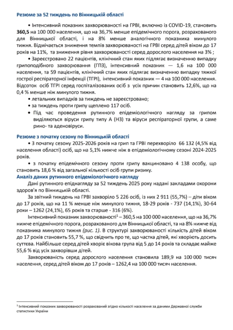 Про епідемічну ситуацію з грипу та ГРВІ і здійснювані заходи по їх профілактиці станом на 29 грудня 2025 року