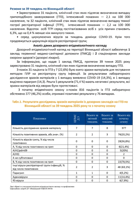 Про епідемічну ситуацію з грипу та ГРВІ і здійснювані заходи по їх профілактиці станом на 29 вересня 2025 року