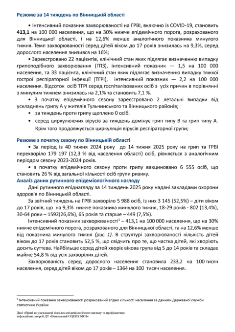 Про епідемічну ситуацію з грипу та ГРВІ і здійснювані заходи по їх профілактиці станом на 7 квітня 2025 року
