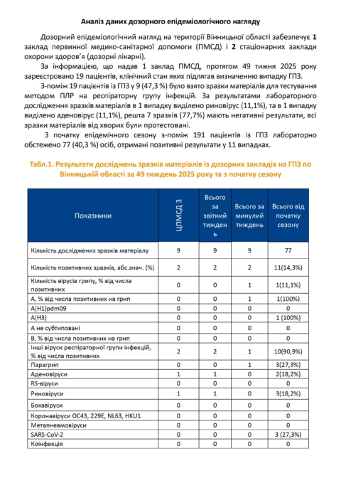 Про епідемічну ситуацію з грипу та ГРВІ і здійснювані заходи по їх профілактиці станом на 8 грудня 2025 року