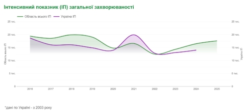 Загальна захворюваність на неінфекційні хвороби, Вінницька область, 2025 р.