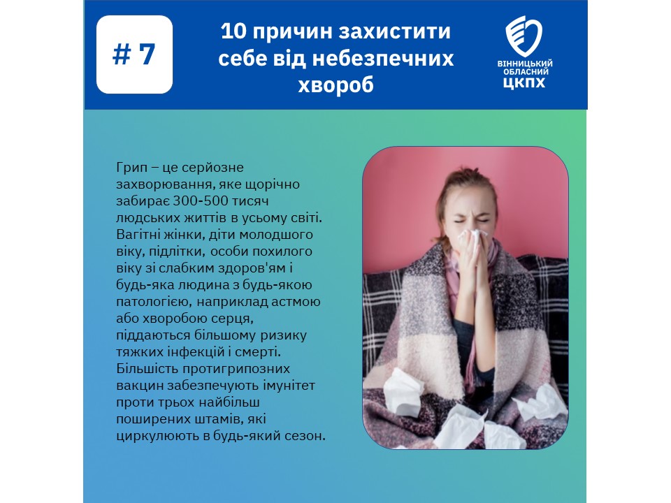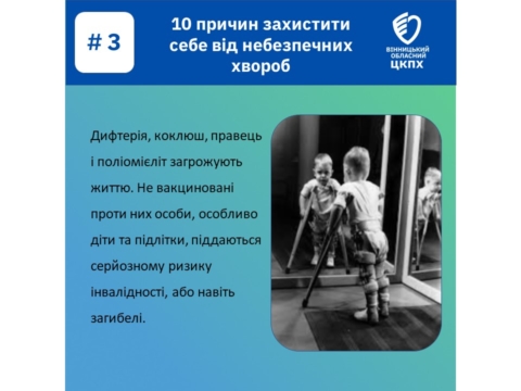 17 січня 2025Ризики поширення інфекційних захворювань під час війни суттєво зростають. Тож нині вкрай важливо подбати про своє здоров’я та своїх близьких. Єдиний захист від небезпечних інфекційних хвороб – вакцинація.
