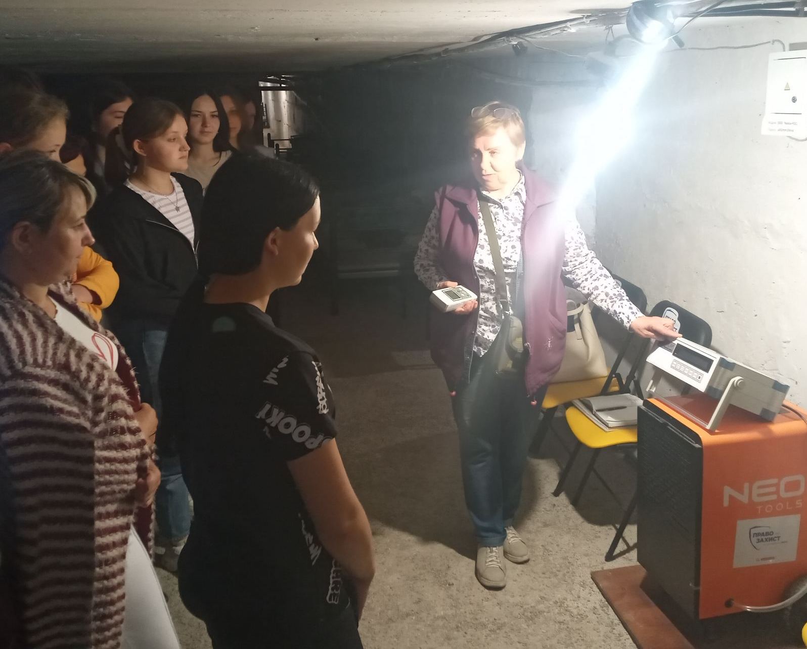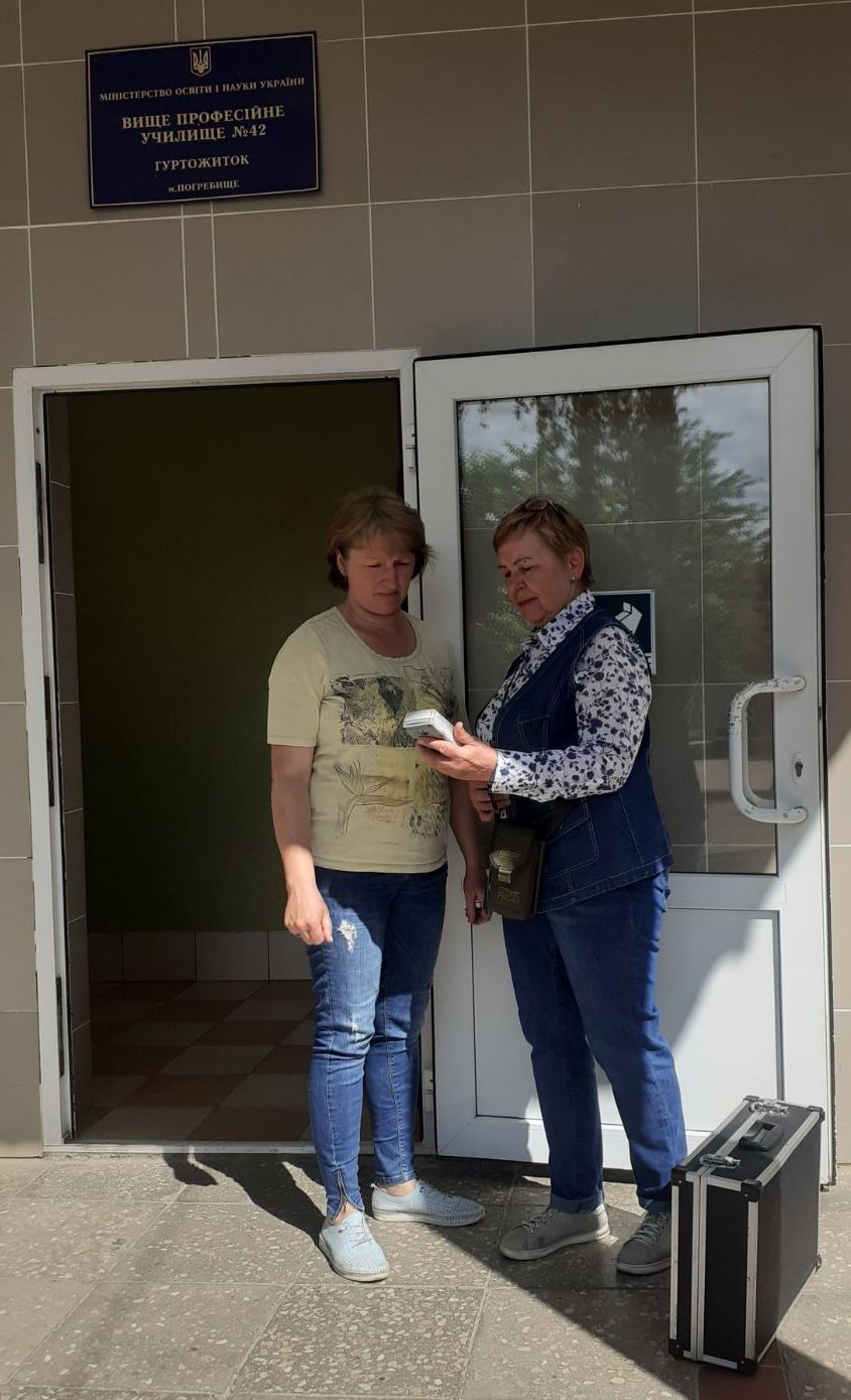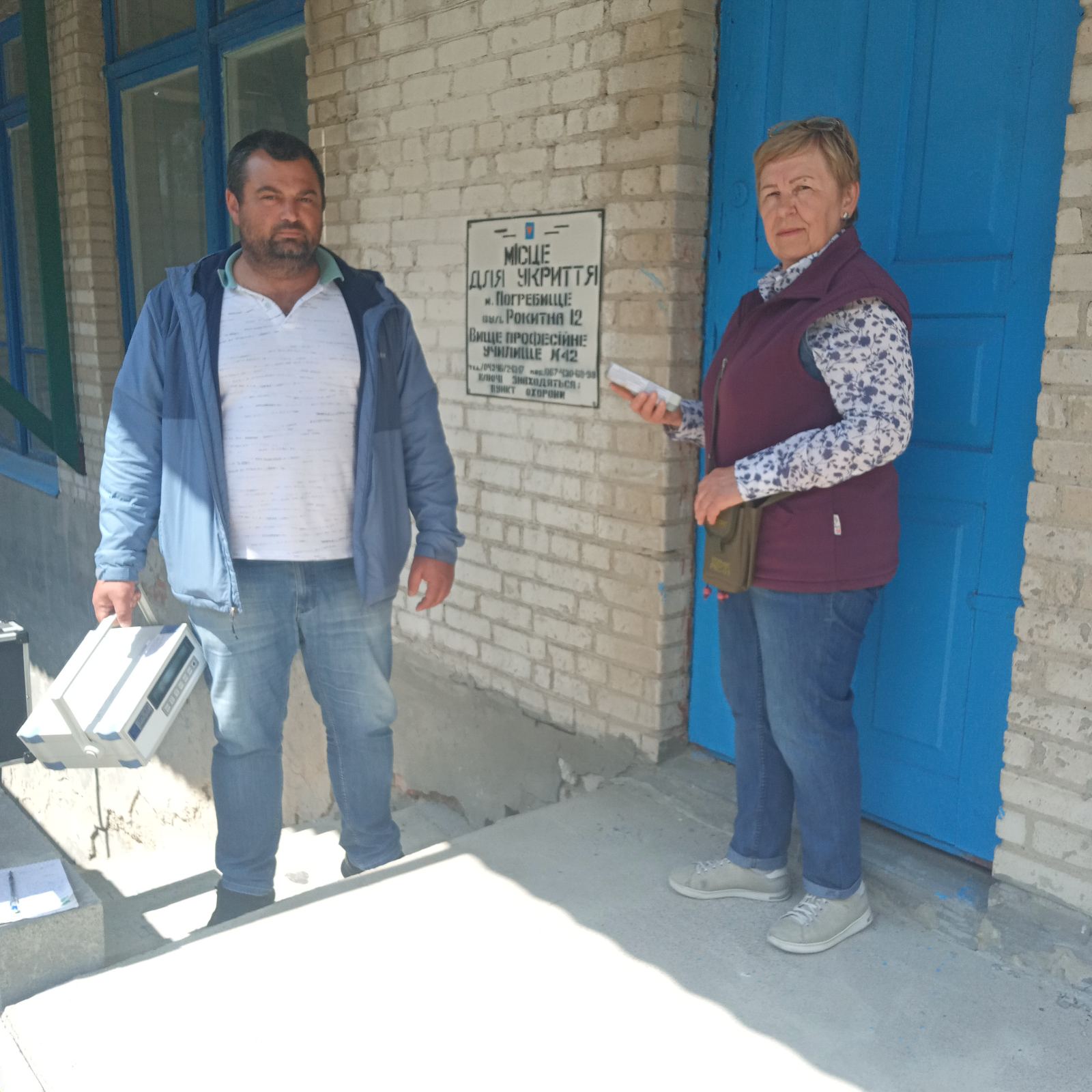 Фахівці лабораторії санітарно-гігієнічних та фізичних досліджень (напрямок радіологічних випробувань) ДУ «Вінницький обласний центр контролю та профілактики хвороб» Віталіна Пристопюк та Віталій Лігус проводили вимірювання вмісту радону-222 та потужності поглиненої в повітрі дози гамма-випромінювання в укриттях, навчальному корпусі, у гуртожитку та побутовому корпусі Вищого професійного училища № 42 м. Погребище.