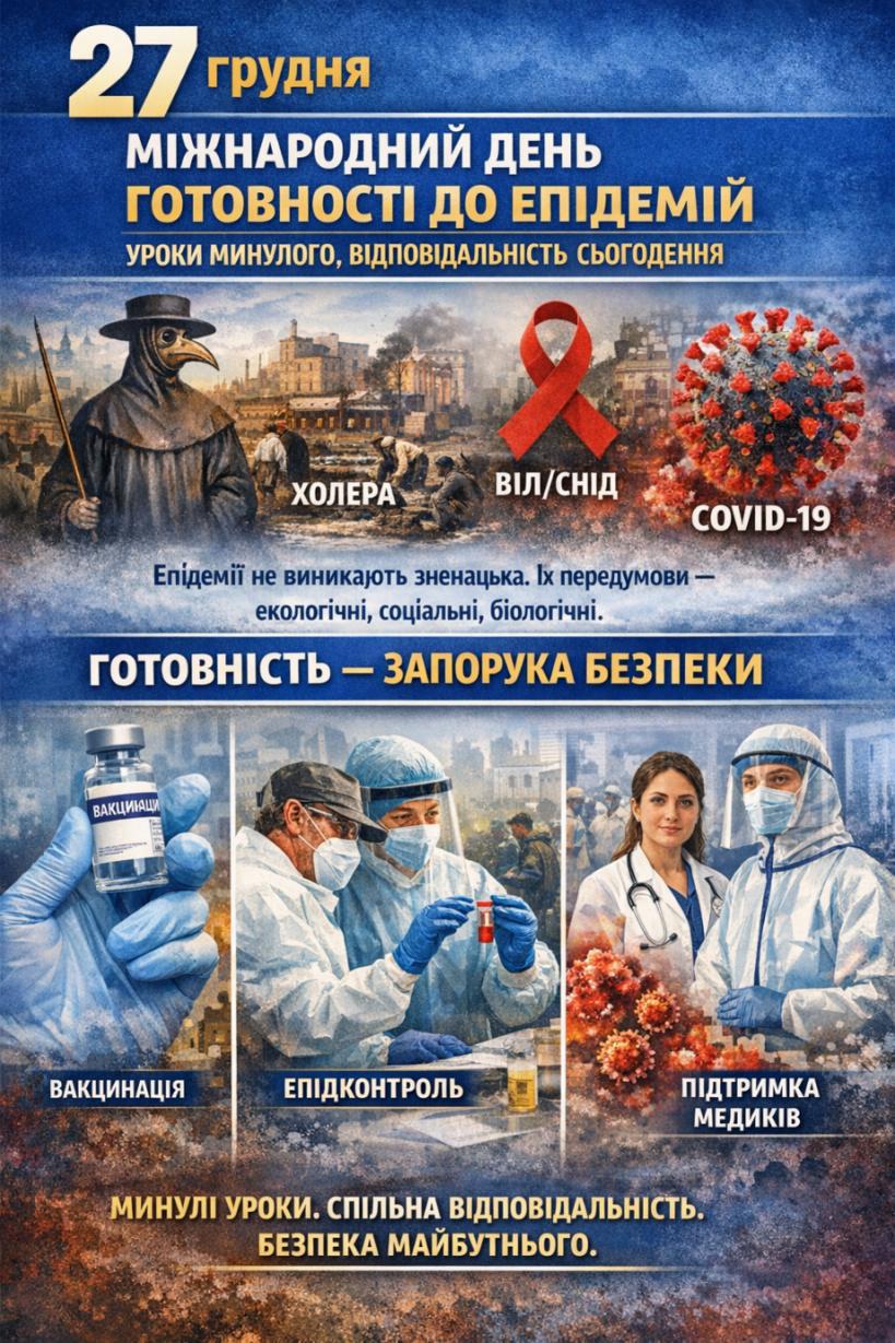 27 ГРУДНЯ – МІЖНАРОДНИЙ ДЕНЬ ГОТОВНОСТІ ДО ЕПІДЕМІЙ: УРОКИ МИНУЛОГО, ВІДПОВІДАЛЬНІСТЬ СЬОГОДЕННЯ