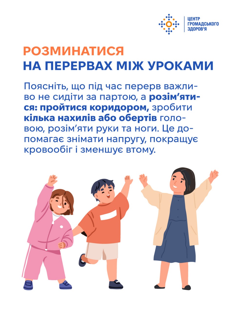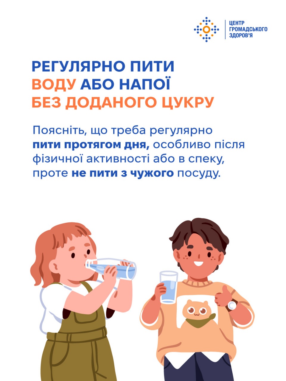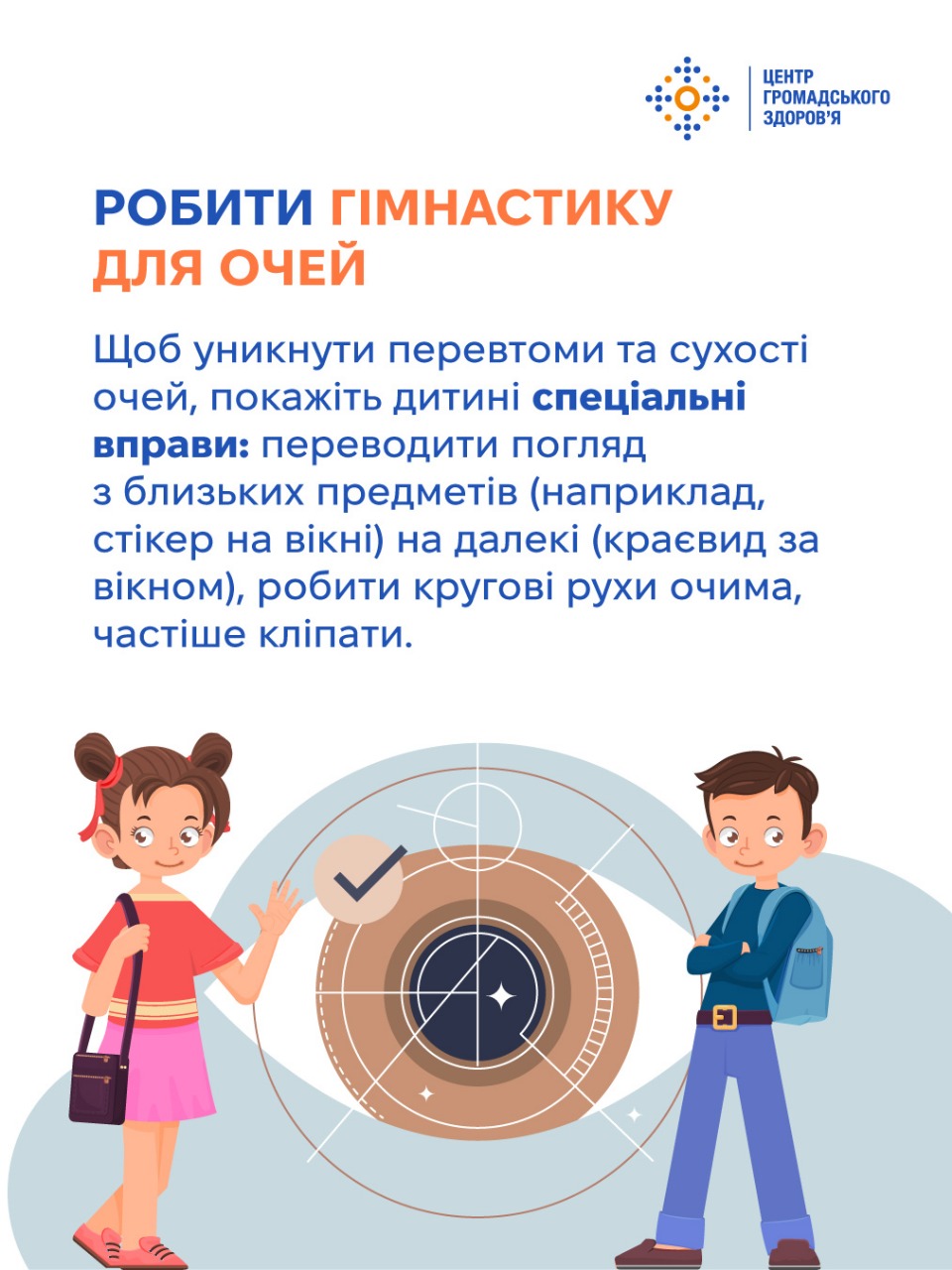 Коли дитина починає ходити до школи, батьки вже не можуть стежити, чи завжди вона миє руки після туалету, чи дає очам відпочити, чи п’є вдосталь води. Тому обов’язок батьків — до школи пояснити дітям принципи особистої гігієни й довести до автоматизму користування ними. Шість ключових звичок, які потрібно передати дітям змалечку, — у картках Центру громадського здоров’я