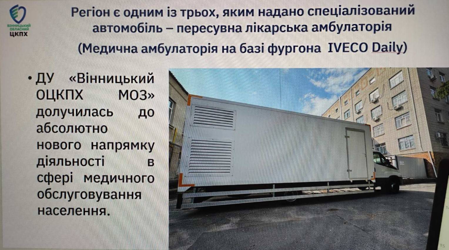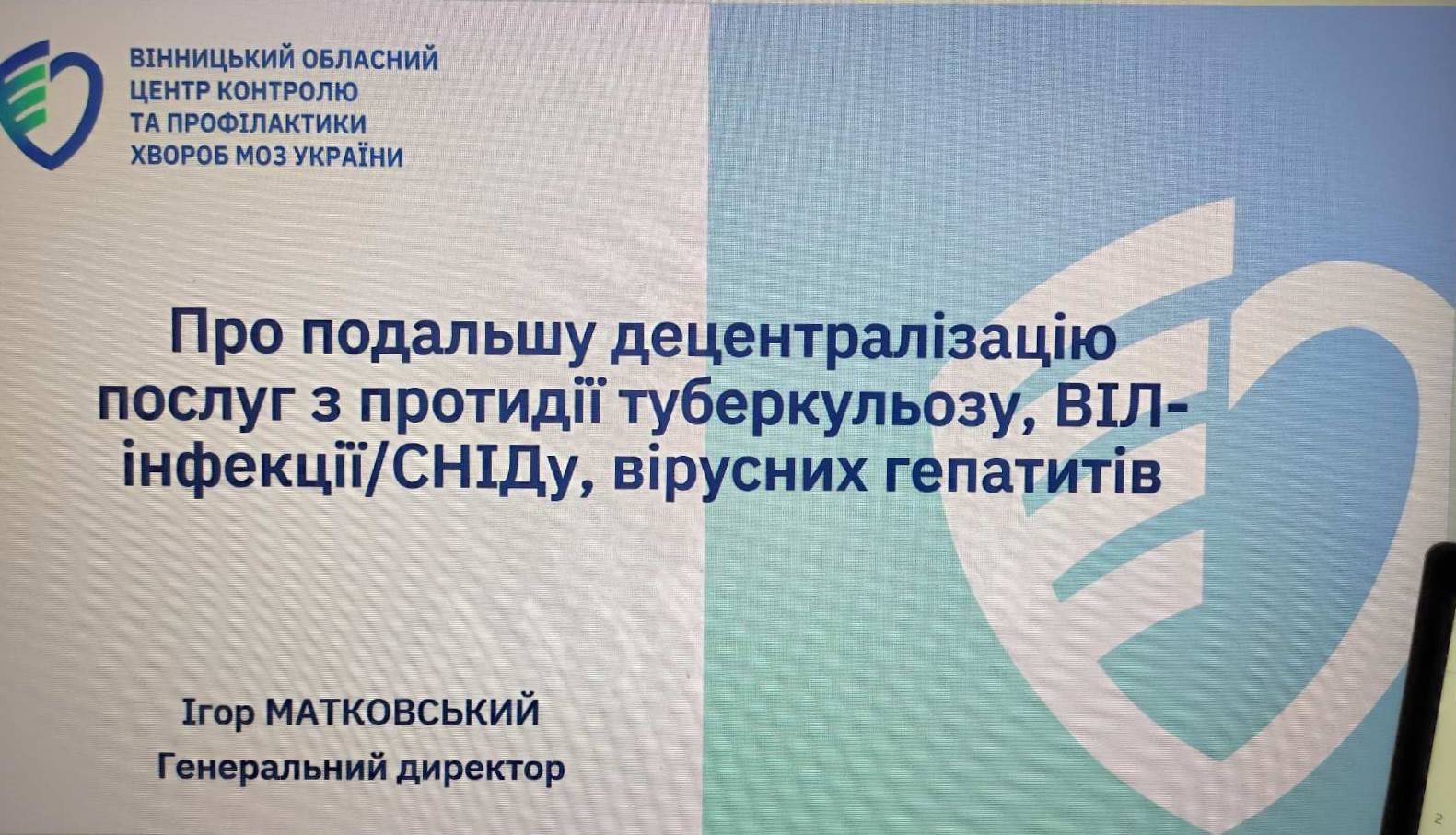 ДУ «Вінницький обласний центр контролю та профілактики хвороб МОЗ України» представляв генеральний директор Ігор Матковський. Він виступив з доповіддю «Про подальшу децентралізацію послуг з протидії туберкульозу, ВІЛ інфекції / СНІДу, вірусним гепатитам». Як зазначив очільник ОЦКПХ, наш регіон є одним із трьох, яким надано спеціалізований автомобіль – пересувну медичну амбулаторію. Цей абсолютно новий напрям діяльності Центру дозволить наблизити медичні послуги до мешканців громад Вінниччини. Також у червні цього року ОЦКПХ отримав ДНК-Екстрактори GeneXpert і картриджі для кількісного визначення РНК вірусного гепатиту С і ДНК вірусного гепатиту В, закуплені Глобальним фондом в рамках програми «Прискорення прогресу у зменшенні тягаря туберкульозу та ВІЛ-інфекції в Україні». Також Ігор Матковський озвучив проблемні моменти Програми та можливі шляхи їх вирішення.