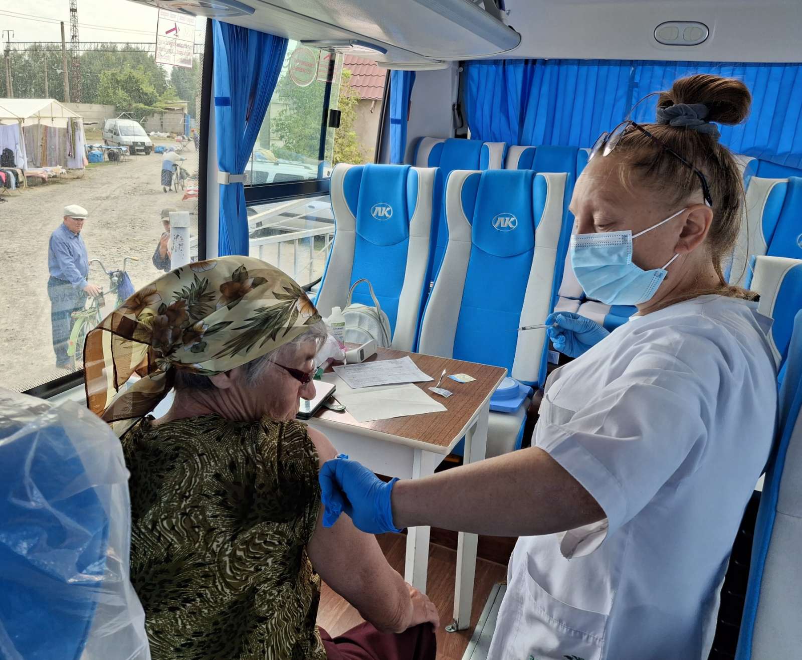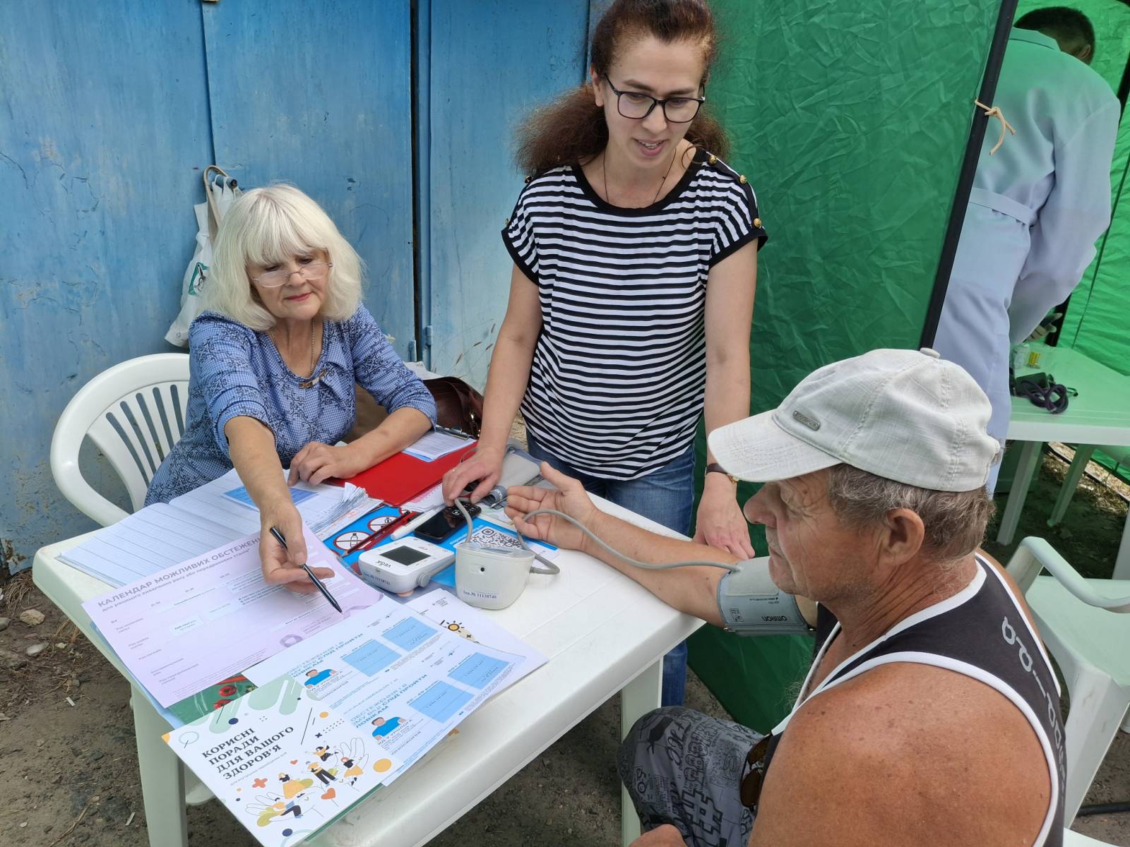 Наші медики разом з колегами з місцевого медичного центру первинної медико-санітарної допомоги організували «Містечко здоров’я». Тут на окремих організованих локаціях проводили безкоштовні тестування на COVID-19, вимірювали артеріальний тиск, рівень глюкози в крові, консультували та надавали загальні рекомендації, розповсюджували друковані інформаційні матеріали про профілактику інфекціям, про переваги здорового способу життя. Крім того, усі охочі мали можливість отримати щеплення від таких інфекційних хвороб як дифтерія та правець, зробити електрокардіограму. Водночас у приміщенні ЦПМСД фахівець Вінницького обласного клінічного фтизіопульмонологічного центру проводив флюрографічне обстеження.