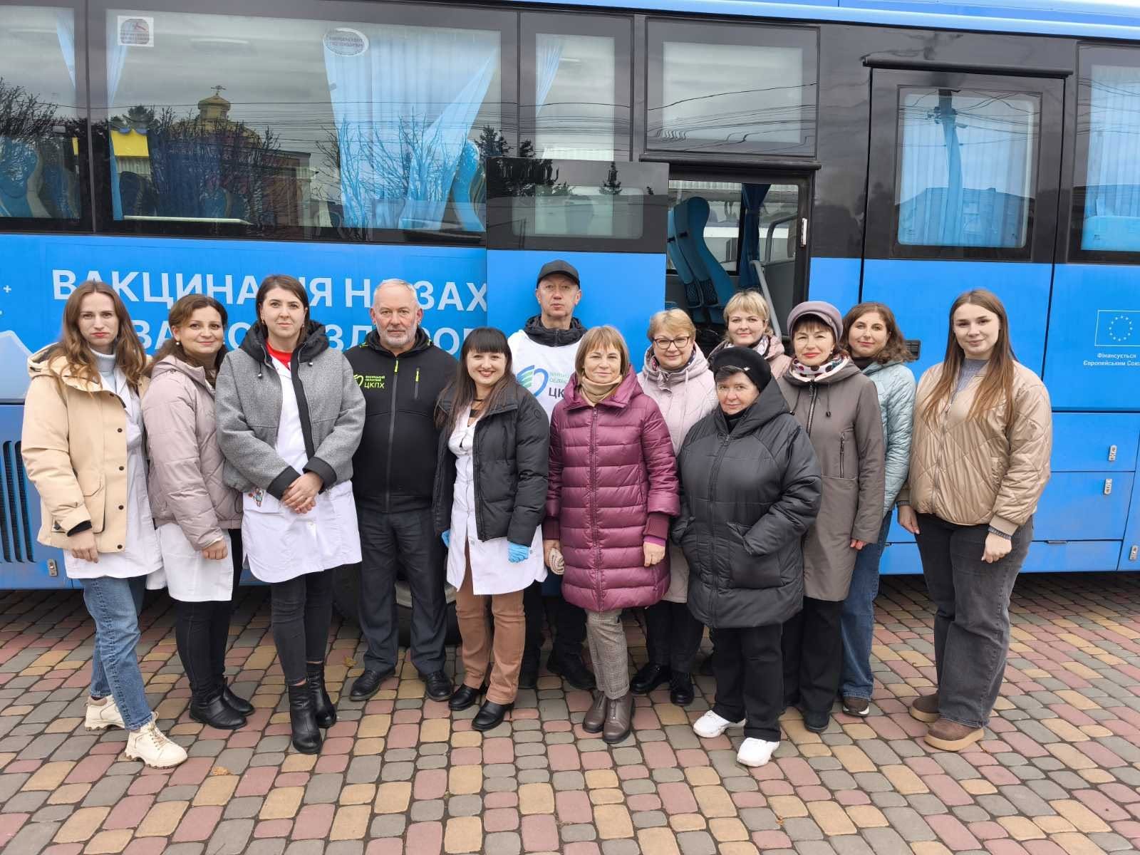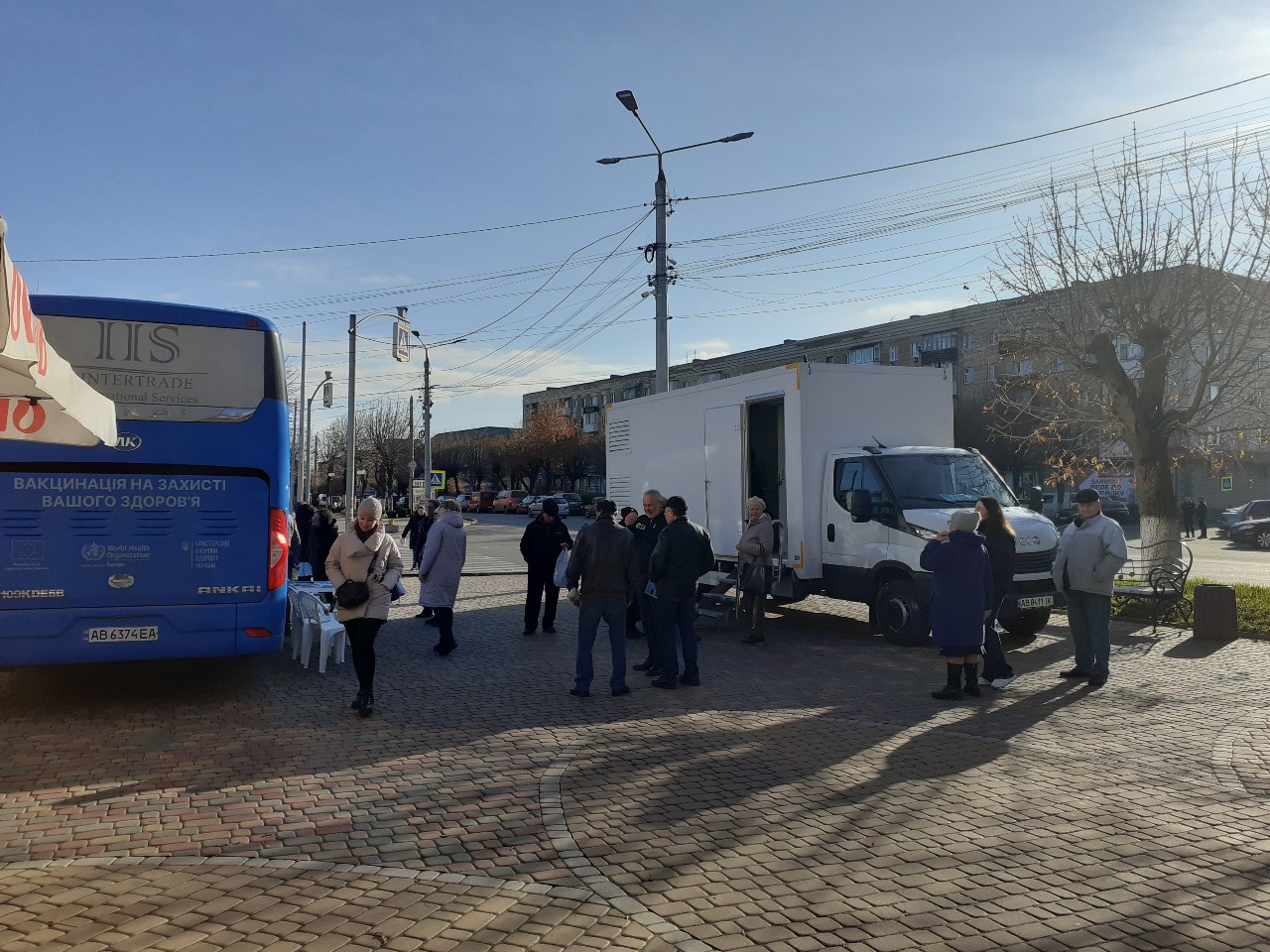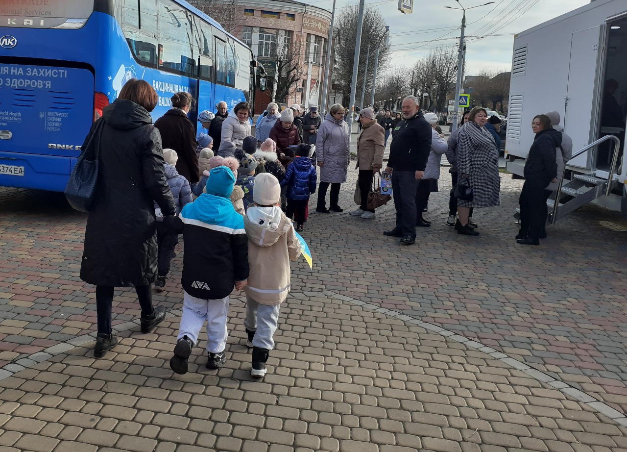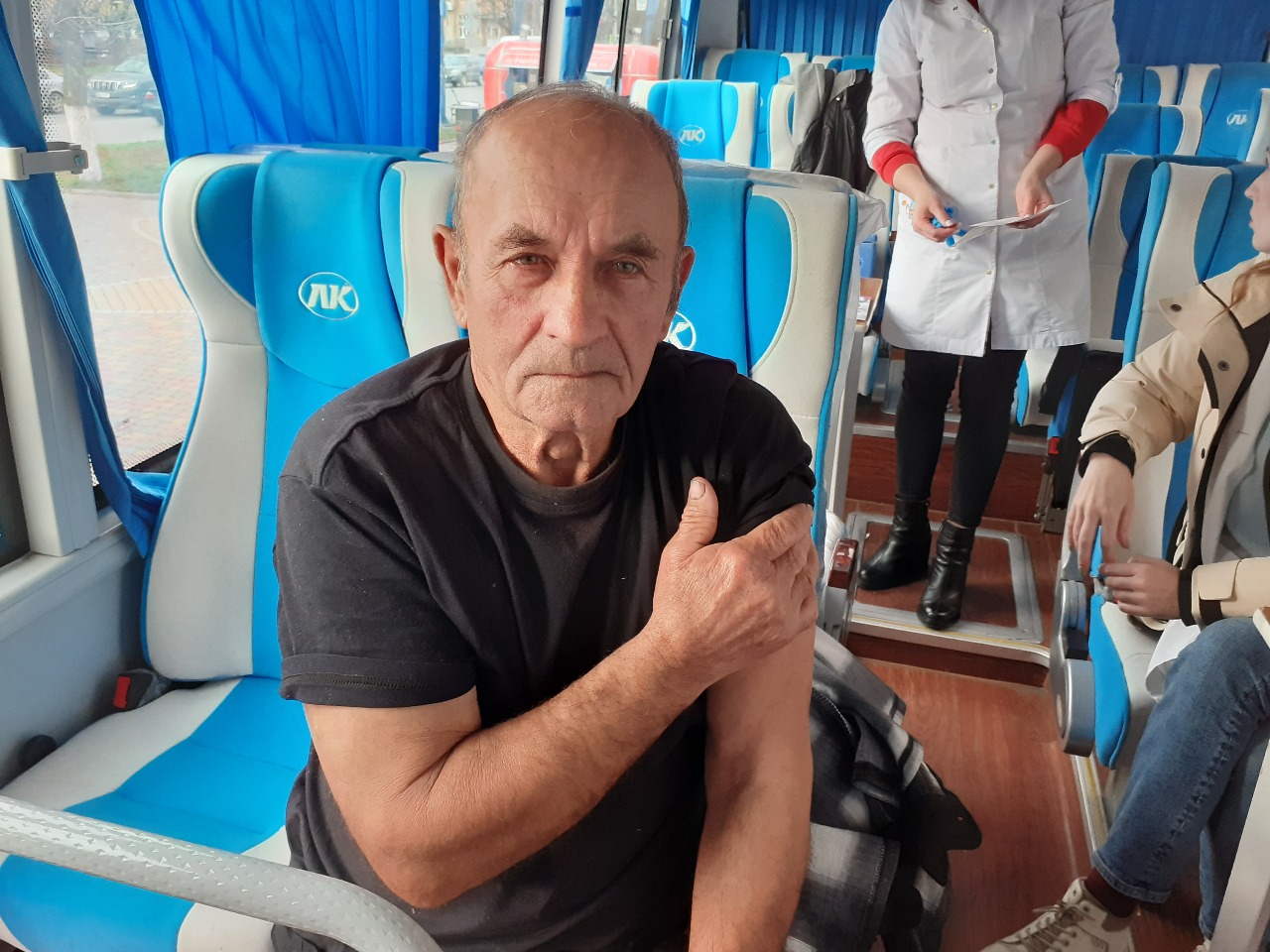 До вакцинобуса й мобільної амбулаторії вишикувалися черги.