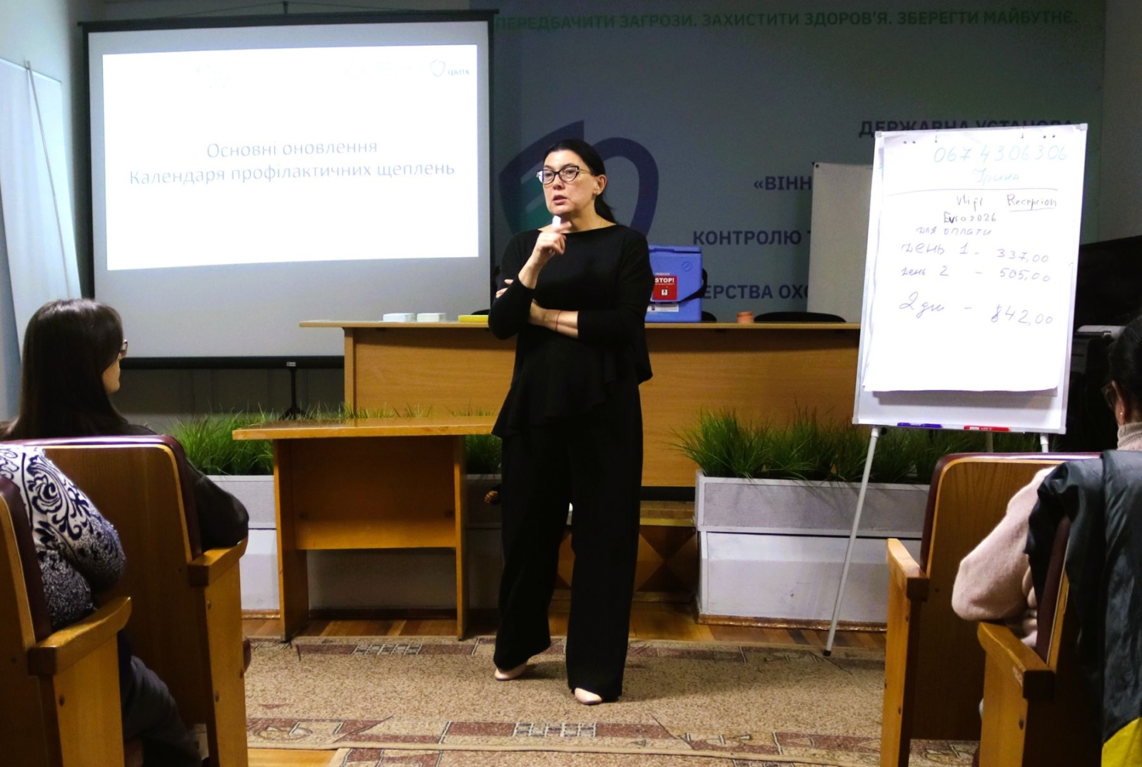 16 січня 2026З 1 січня 2026 року в Україні набув чинності оновлений Календар профілактичних щеплень. Фахівці Вінницького обласного центру контролю та профілактики хвороб в рамках заходів з безперервного професійного розвитку провели тренінг для медичних працівників області «Організація і техніки проведення щеплень відповідно до оновленого Календаря профілактичних щеплень в Україні. Холодовий ланцюг. Несприятливі події після імунізації та навички надання невідкладної допомоги. Комунікація». Навчальний захід тривав два дні у двох форматах – онлайн та офлайн