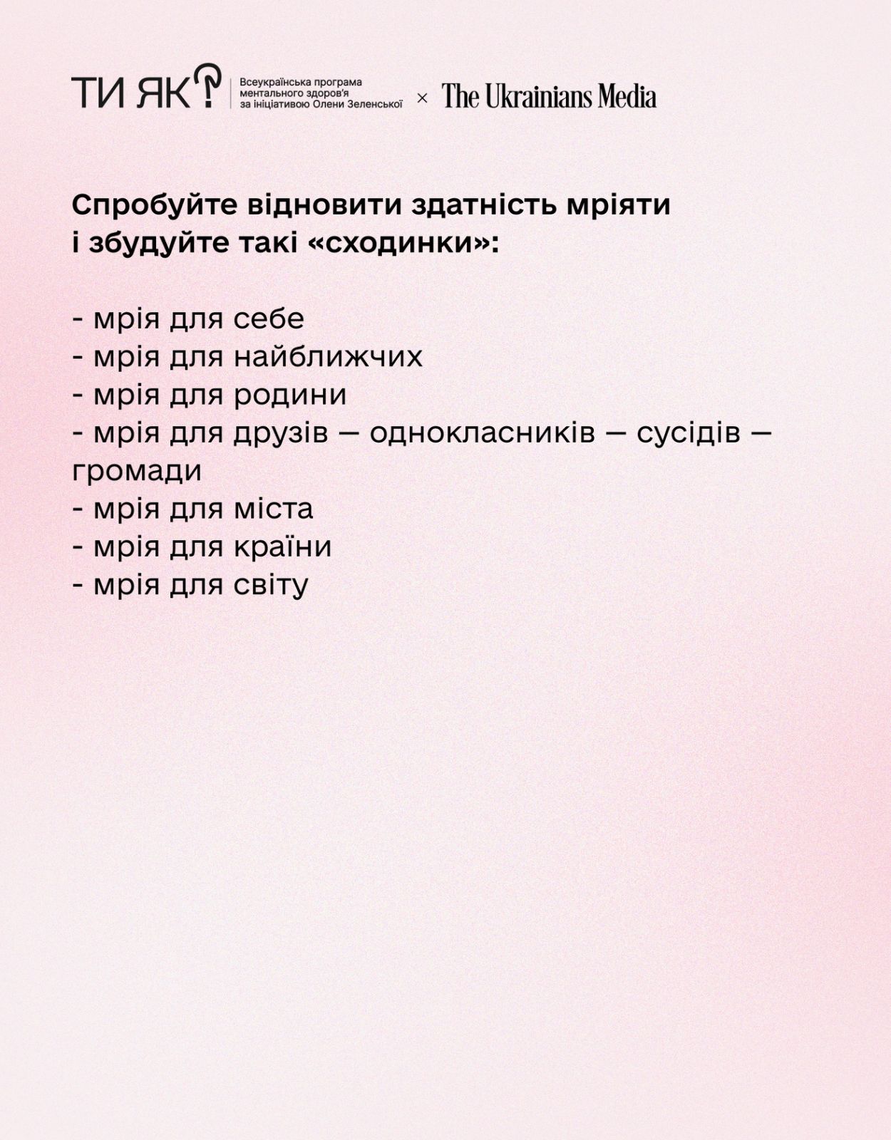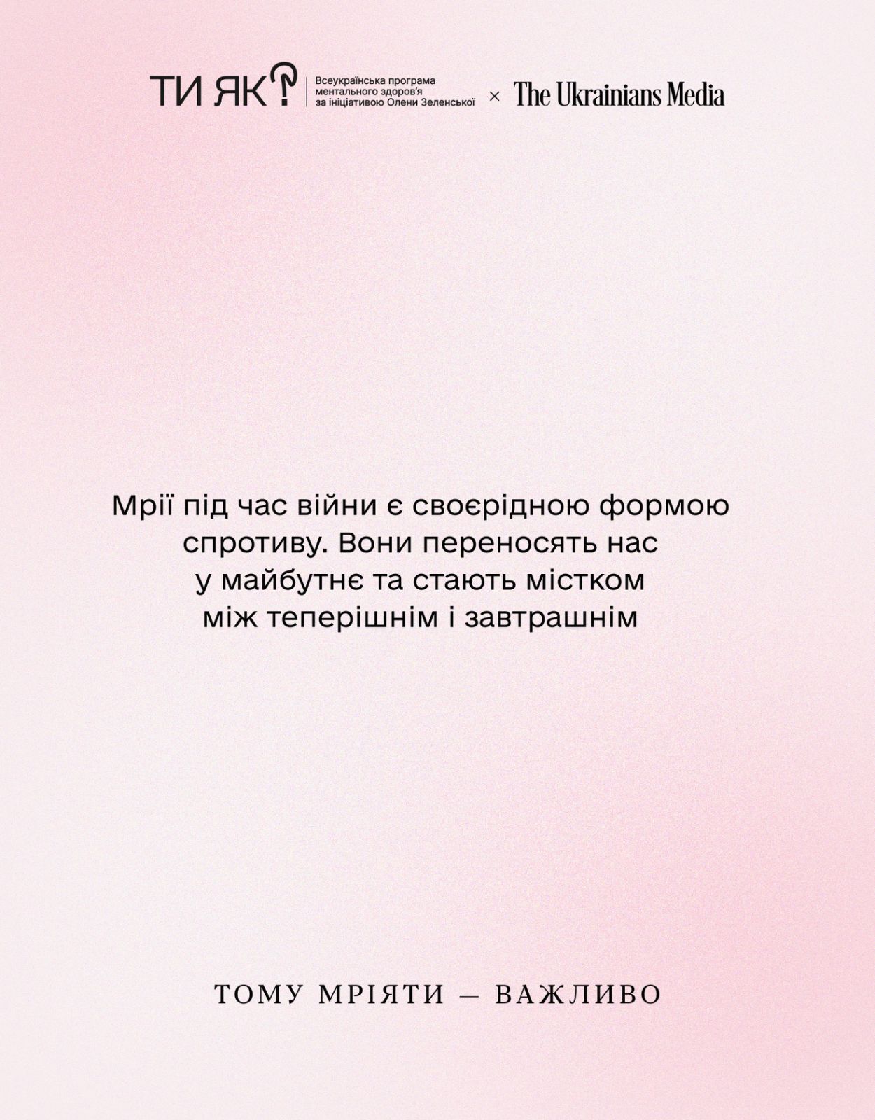 Разом із The Ukrainians та психологинею Світлана Ройз роздумуємо про те, чому мріяти зараз важливо і чому нормально, якщо тобі складно це робити