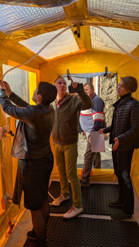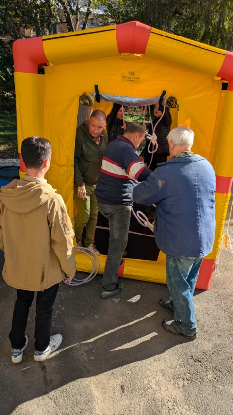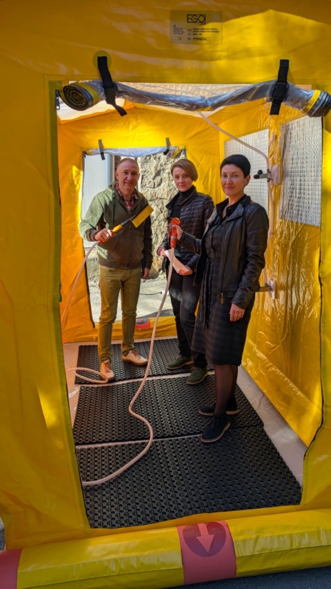 Як пояснила завідувачка відділу моніторингу та реагування на небезпеки Людмила Даровська, деконтамінаційний душ призначений для знезараження одягу і спорядження персоналу груп оперативного реагування ОЦКПХ. Спеціальна кабіна допоможе убезпечити їх у разі виникнення хімічної, радіаційної або біологічної загрози.