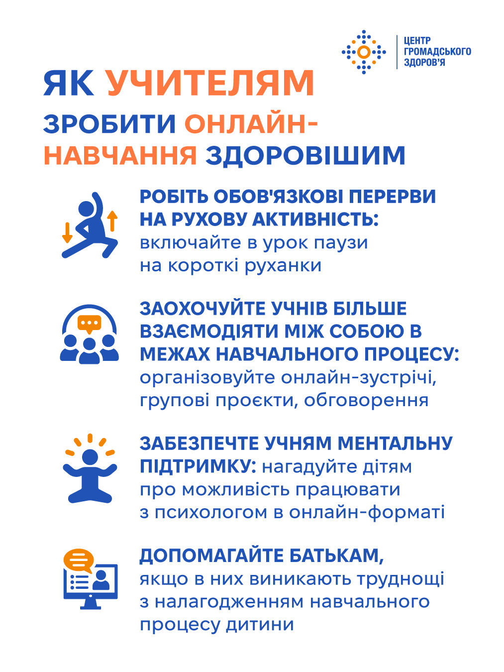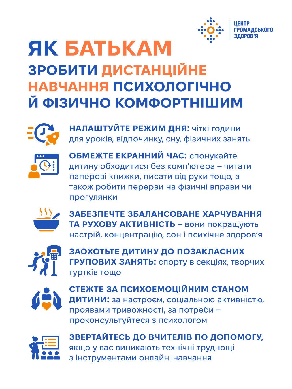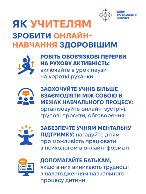 Як батькам і вчителям полегшити дітям процес дистанційного навчання — коротко в інфографіці Центр громадського здоров’я України