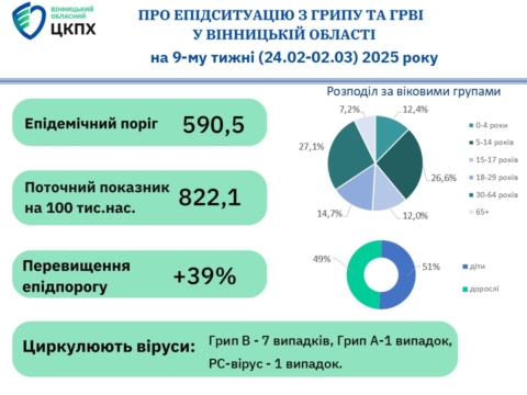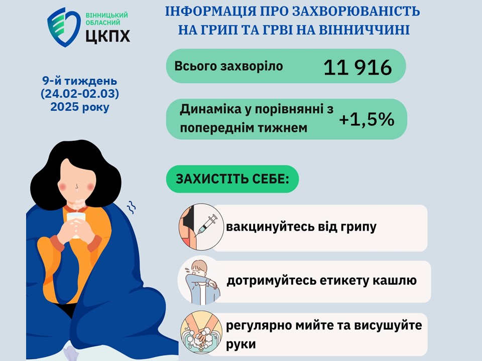 Грип і ГРВІ на Вінниччині станом на 03.03.2025 р.