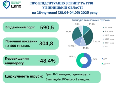 Грип і ГРВІ на Вінниччині станом на 05.05.2025 р.