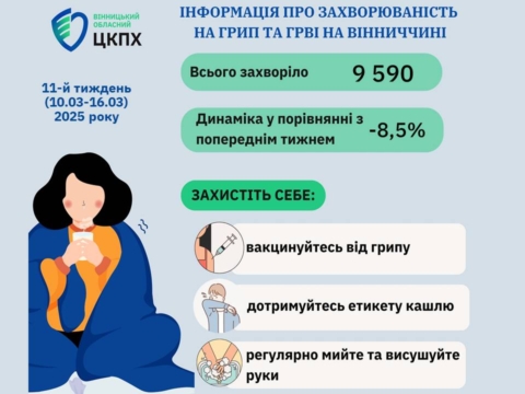 Грип і ГРВІ на Вінниччині станом на 17.03.2025 р.