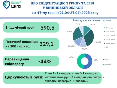 Грип і ГРВІ на Вінниччині станом на 28.04.2025 р.